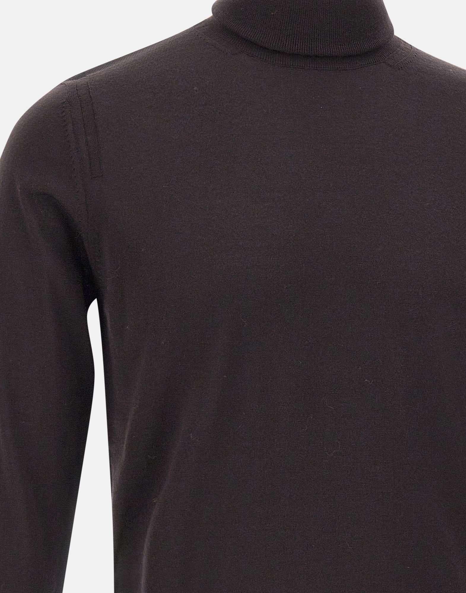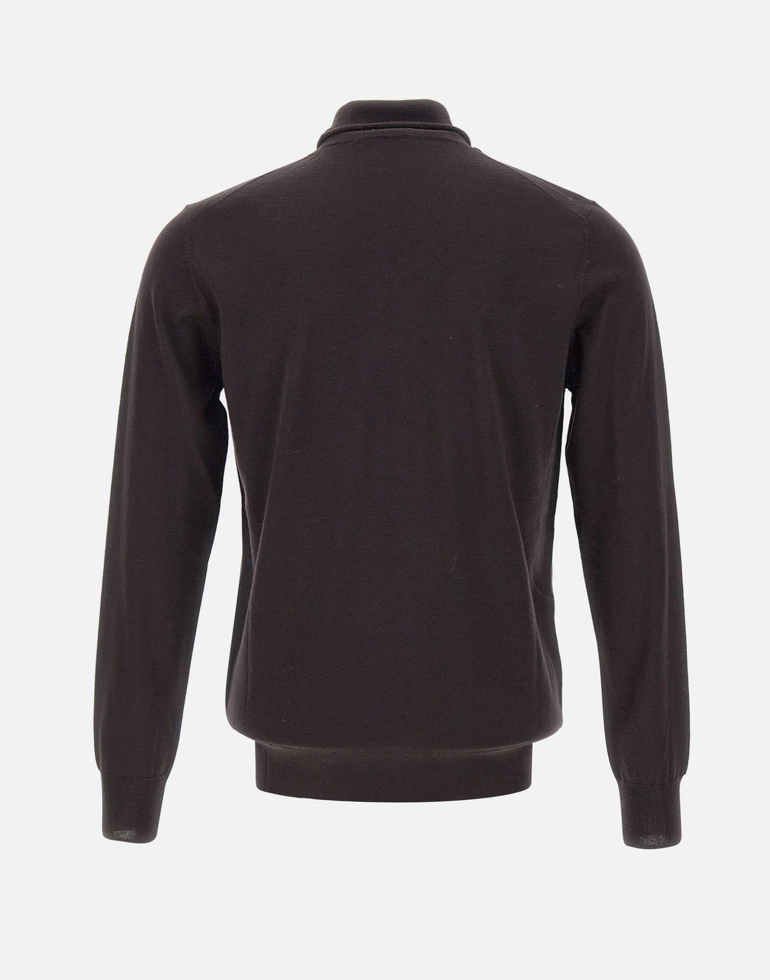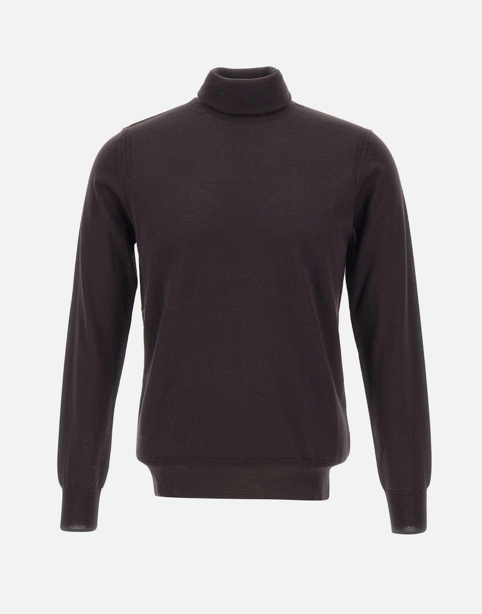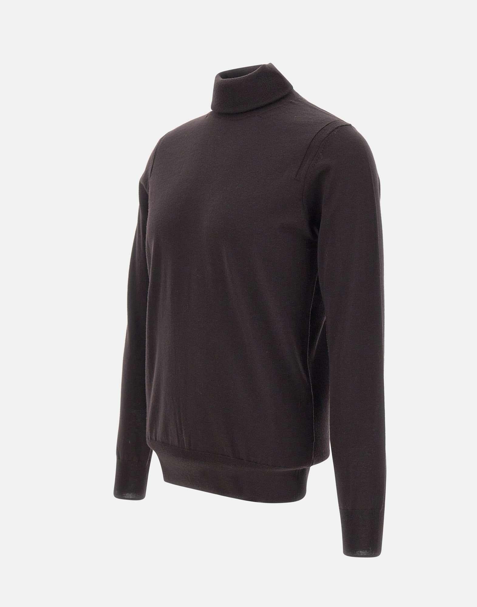 Paolo Pecora mens sweater in brown wool, featuring a high neck and ribbed trims. Crafted from ultra-light, warm yarn, perfect for colder days. Regular fit for a refined and versatile style.