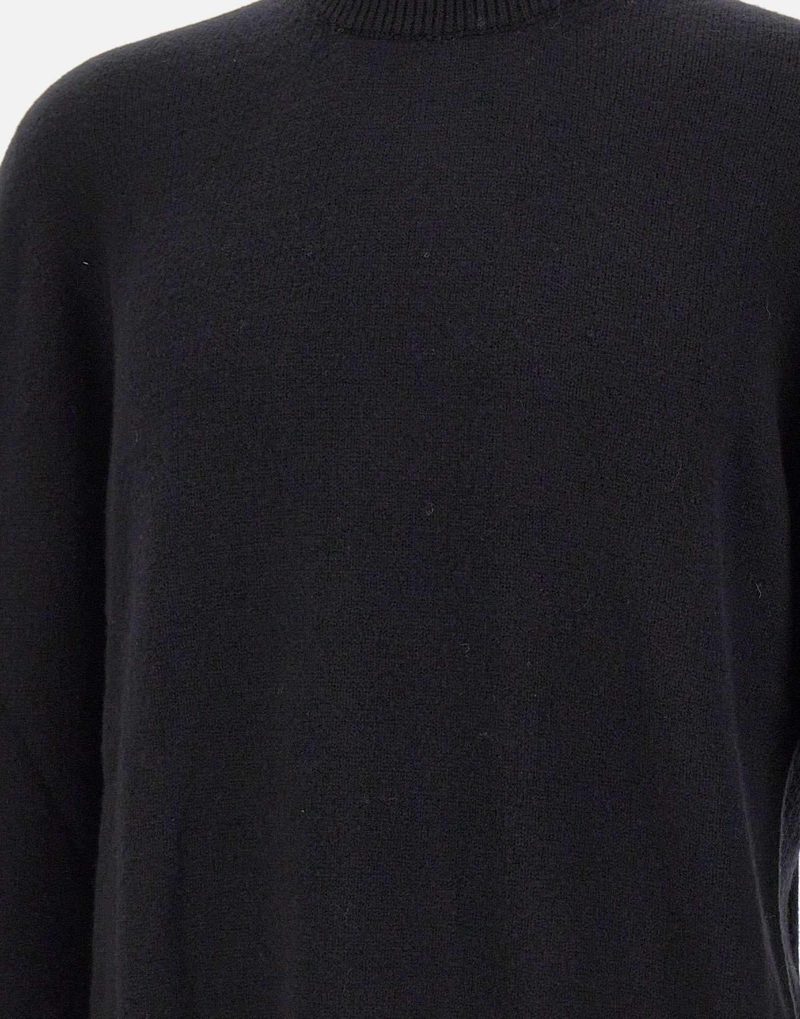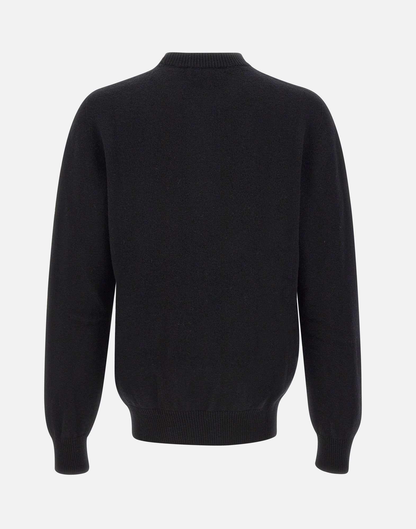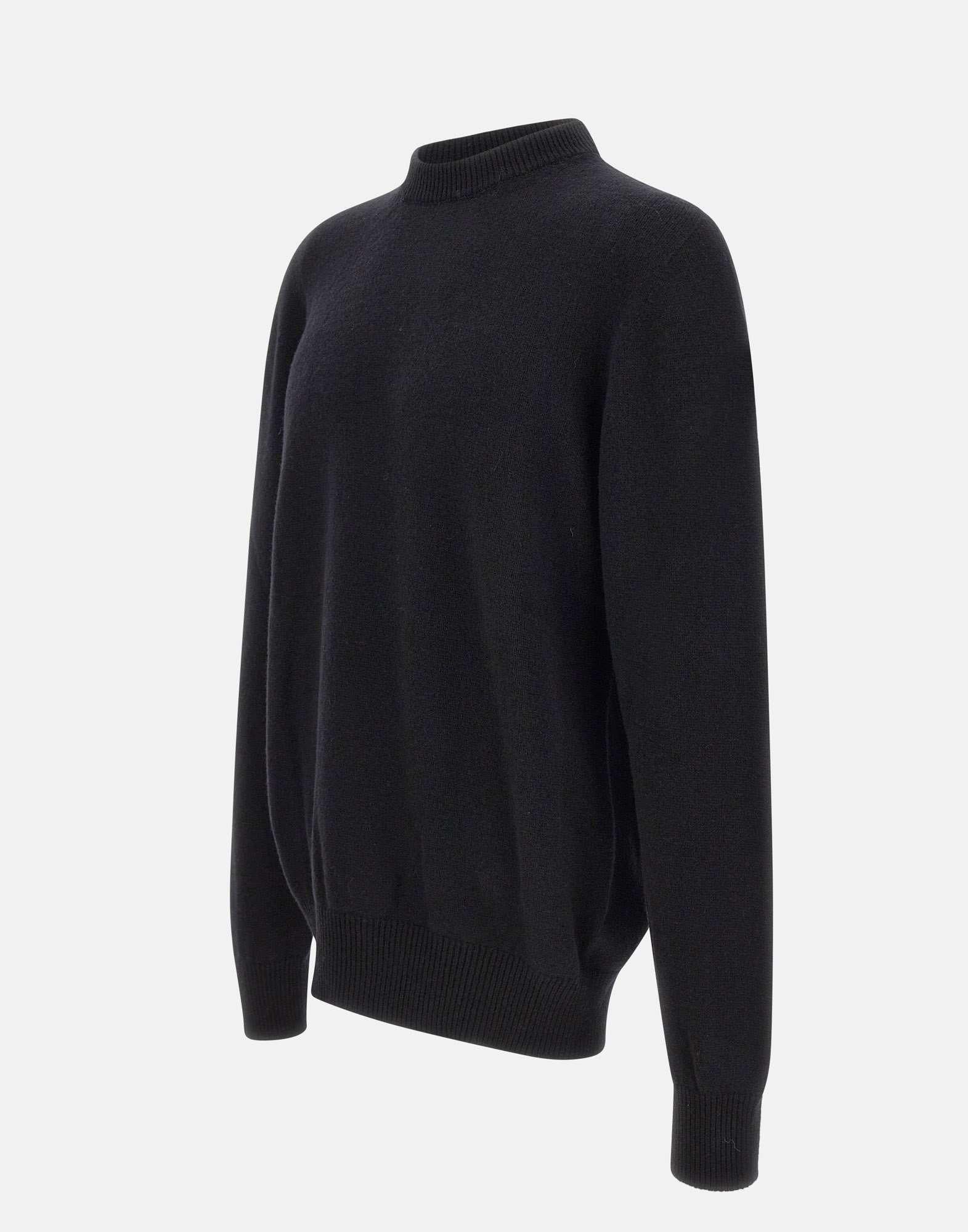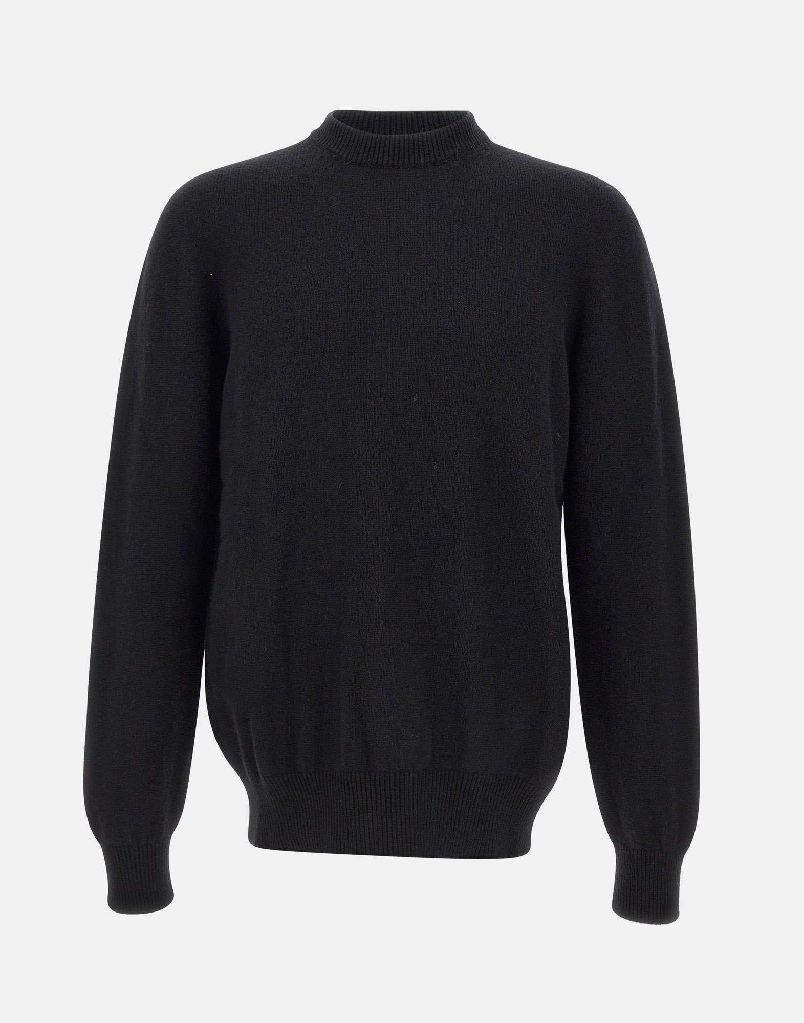 Men's Laneus sweater black, crafted from a fine blend of merino wool and cashmere with a smooth stockinette stitch texture. It features a regular fit with gently dropped shoulders and ribbed trims at the neckline, cuffs, and hem. An essential and refined piece, ideal for effortless layering. Made in Italy.