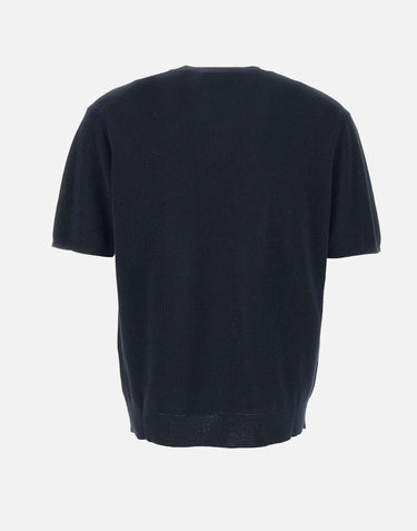 Filippo De Laurentiis men's cotton crepe sweater, blue, short sleeves, crew neck, ribbed hems, light and fresh ultra-comfort yarn, regular fit, made in Italy.