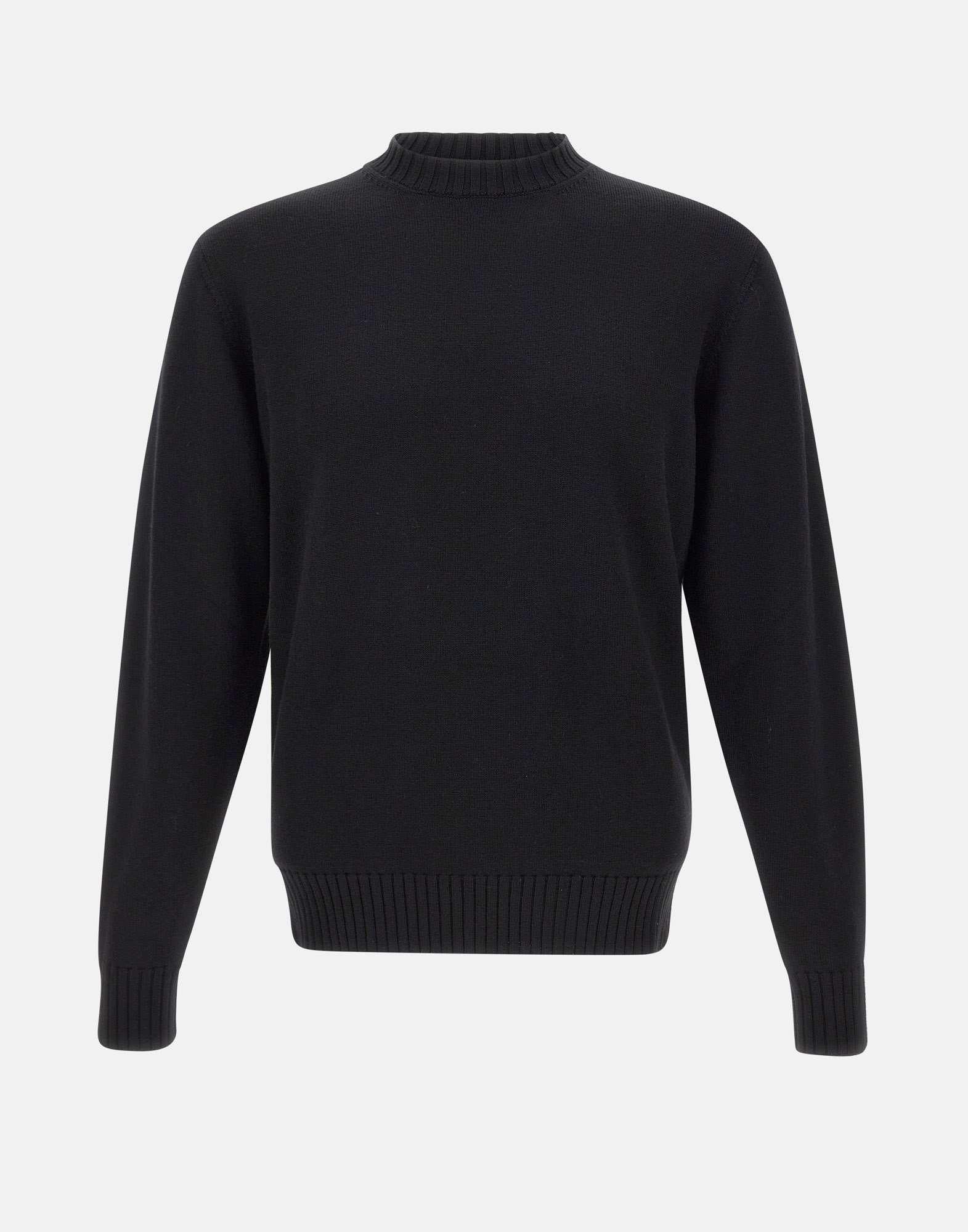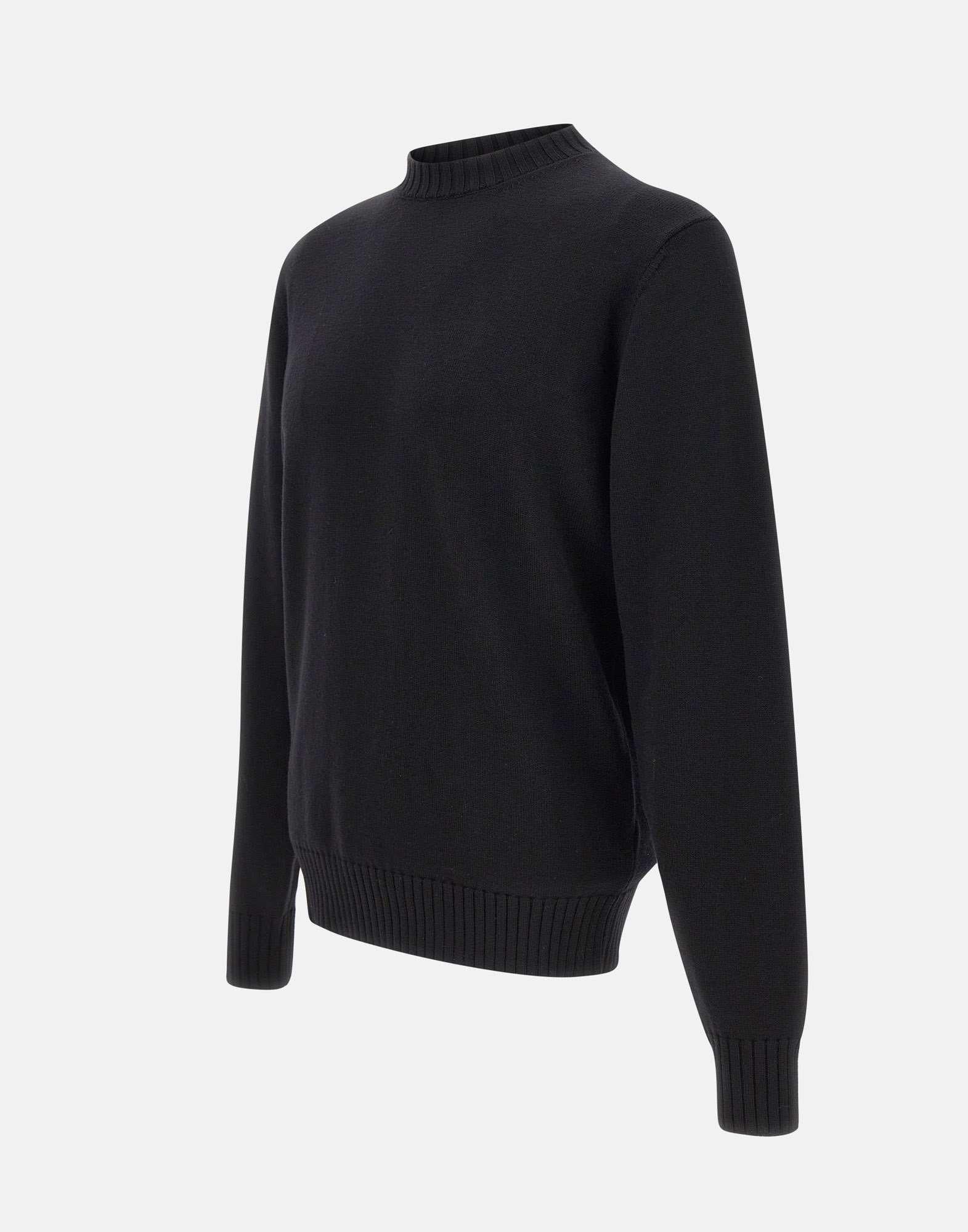Men's crew neck sweater by Filippo De Laurentiis in 100% extrafine merino wool, black color. Ribbed collar, cuffs and hem. Slim fit for an elegant and comfortable silhouette. A timeless wardrobe staple, proudly made in Italy.