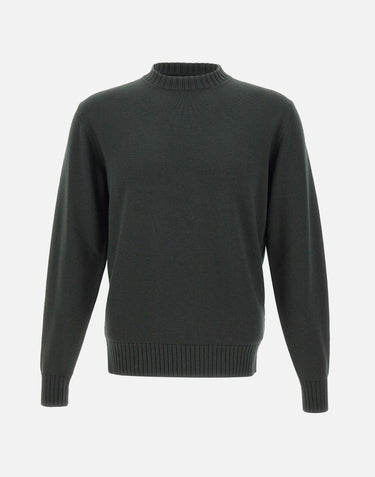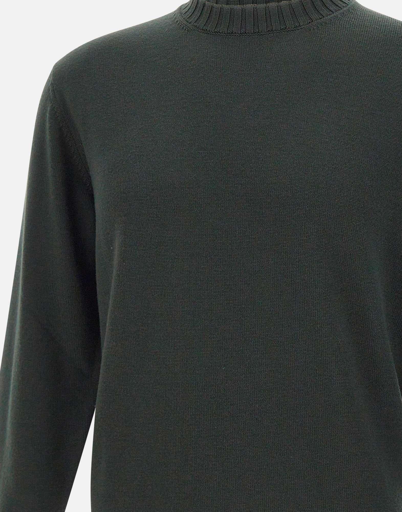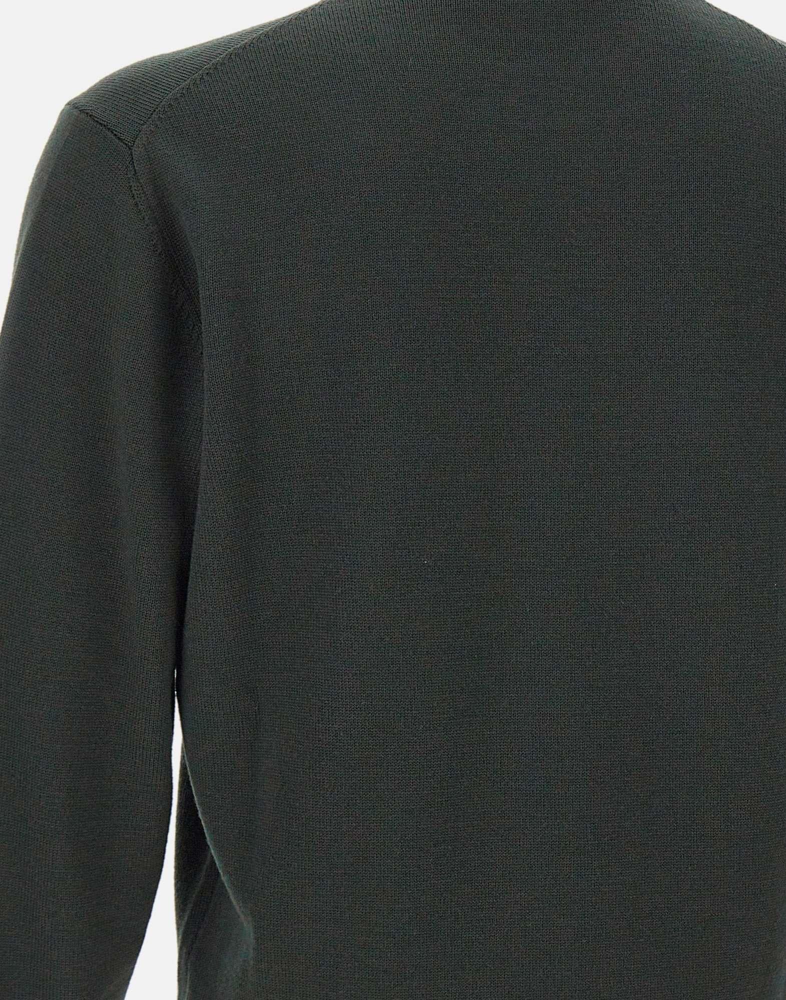 Men's crew neck sweater by Filippo De Laurentiis in 100% extrafine merino wool, dark military green. Ribbed collar, cuffs and hem. Slim fit for an elegant and comfortable silhouette. A timeless wardrobe staple, proudly made in Italy.