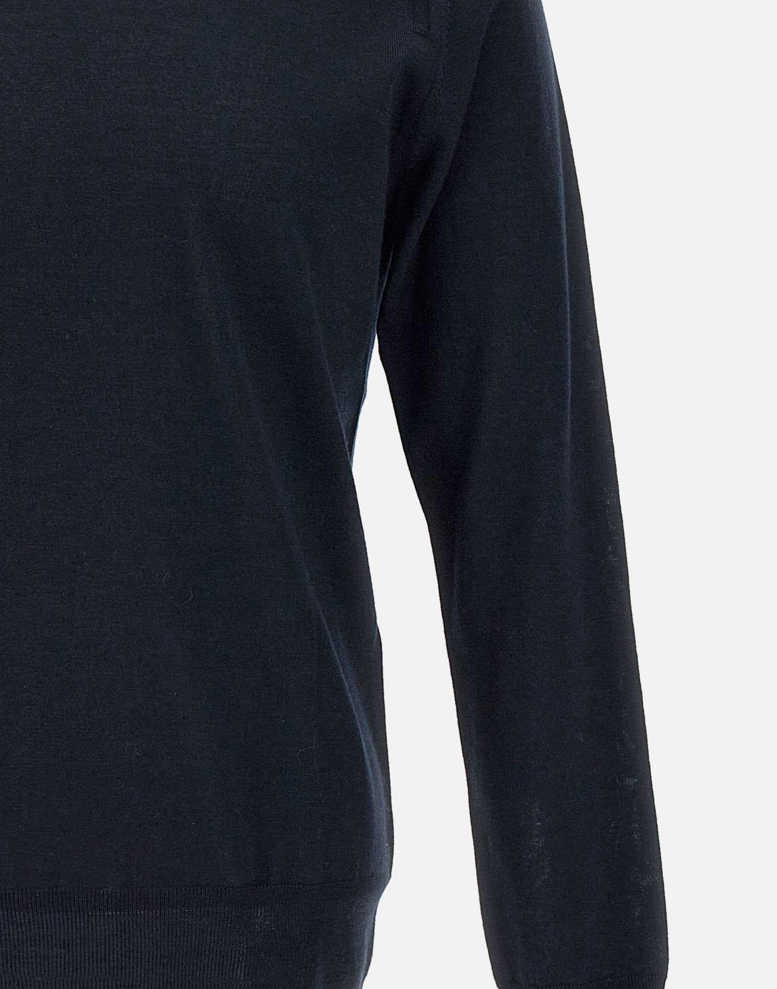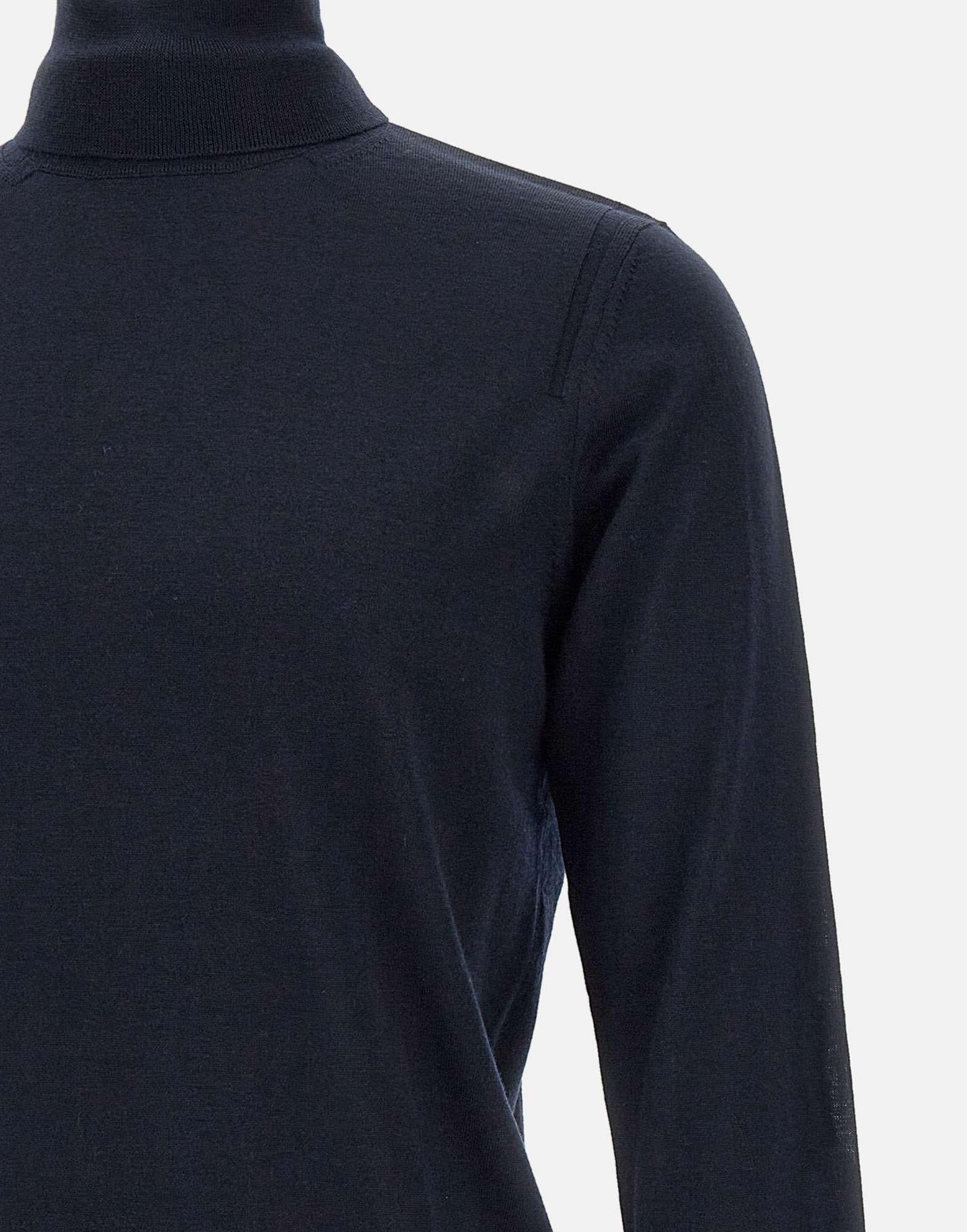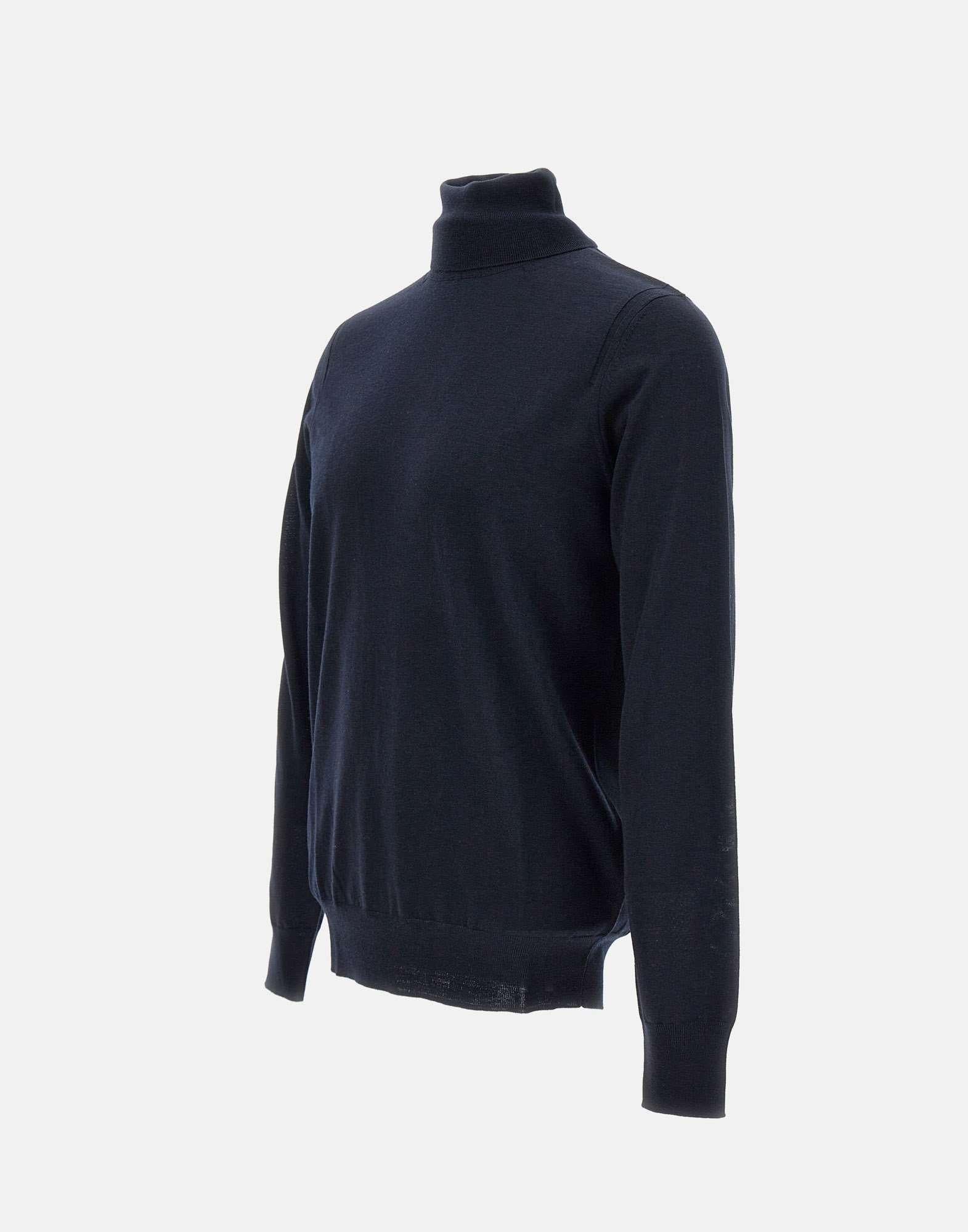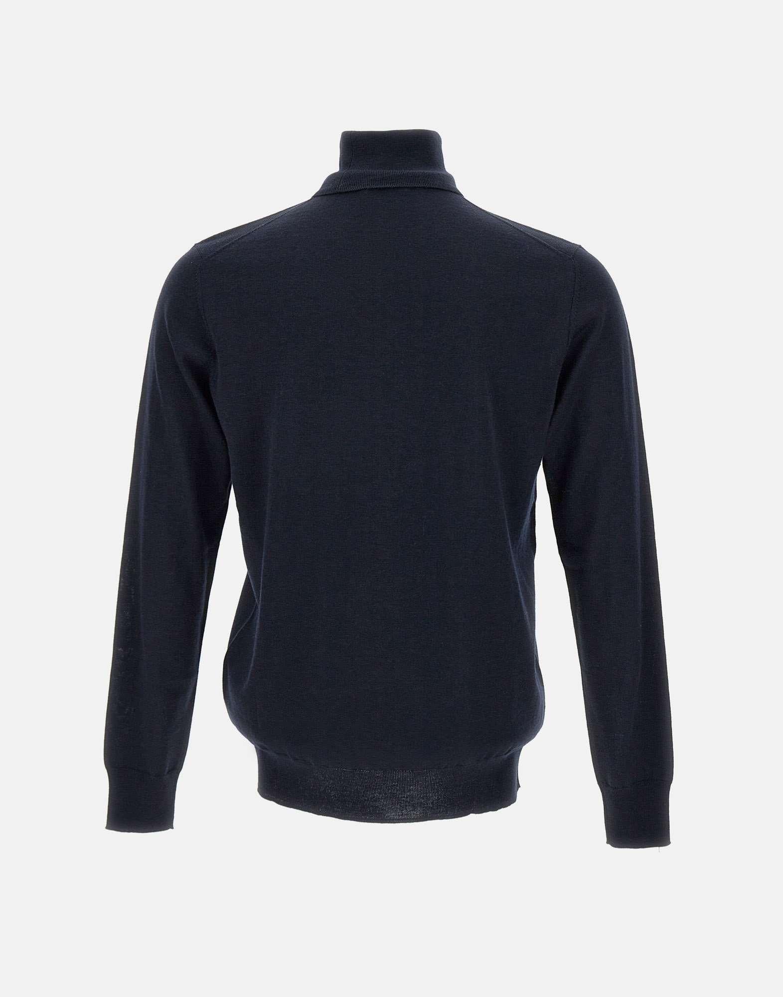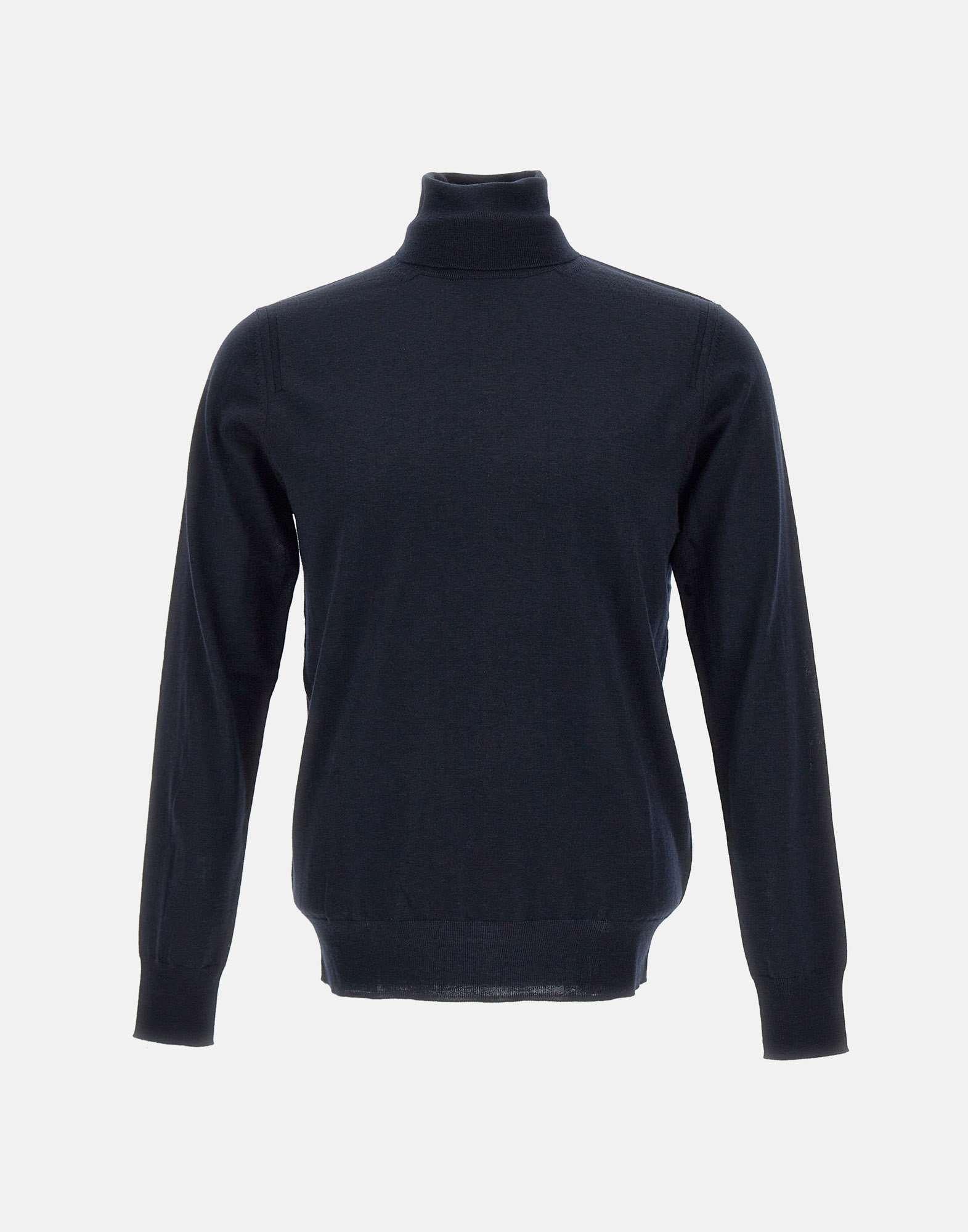 Paolo Pecora mens sweater in navy blue wool, featuring a high neck and ribbed trims. Made from ultra-light, warm yarn, it offers comfort and style for the colder season. Regular fit for a refined and versatile look.