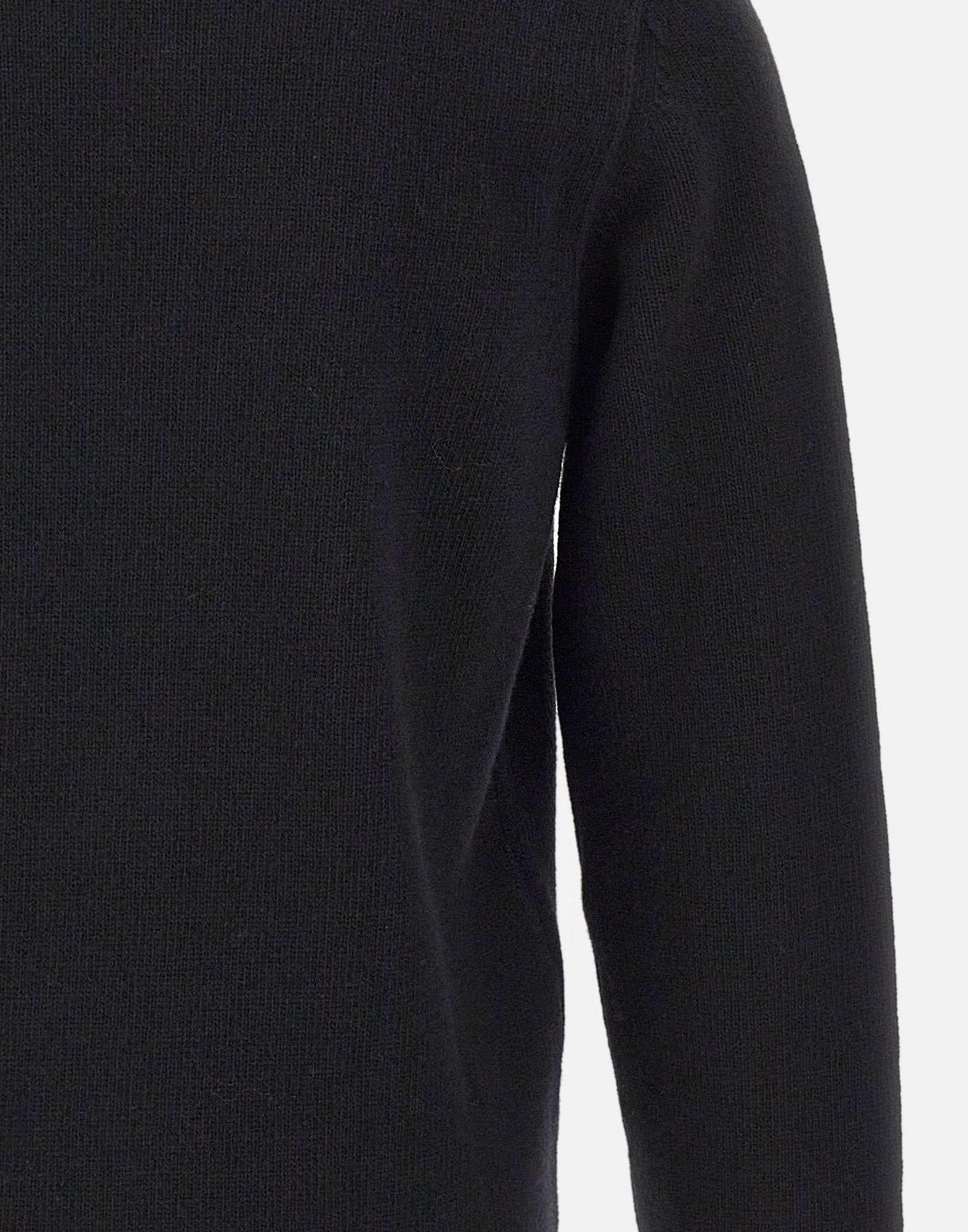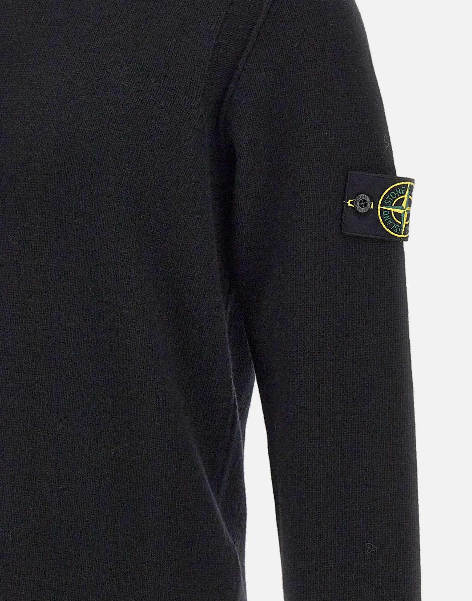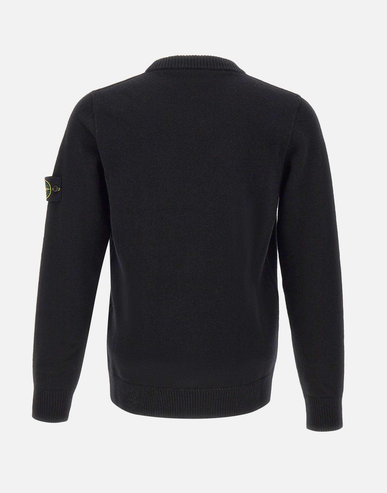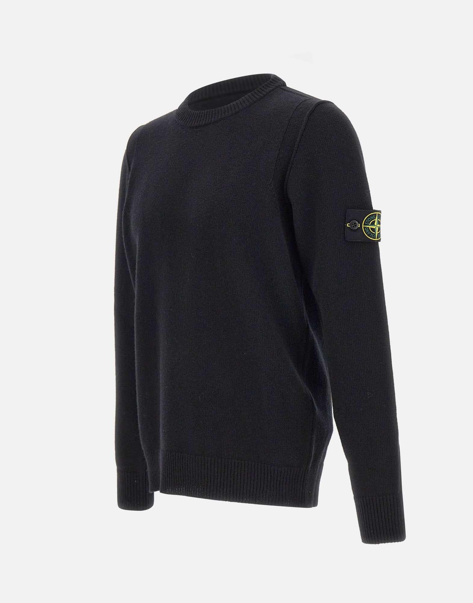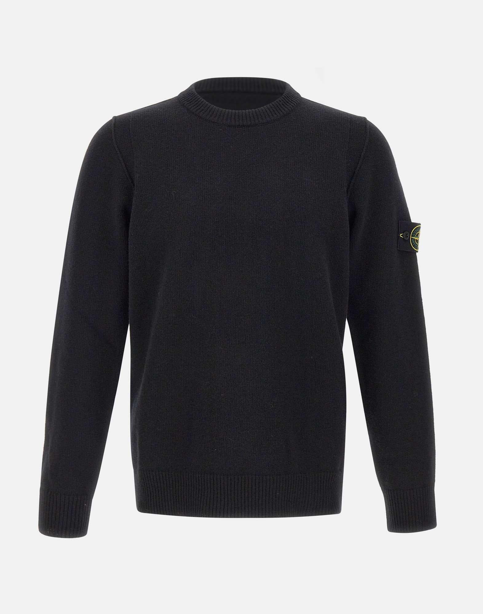 Stone Island men's black color 7-gauge shaved lambswool sweater, long sleeves, crew neck, ribbed edges, stitching on armhole, logo badge on left sleeve, regular fit, hand wash recommended.
