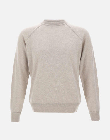 Men's crewneck pullover by Filippo De Laurentiis in a refined pumice grey wool cashmere blend. Featuring raglan sleeves and ribbed trims at the collar, cuffs and hem, this fine knit sweater offers a perfect balance of elegance and comfort. Slim fit. Crafted from luxurious yarns, it provides warmth and softness while maintaining a clean, timeless silhouette, ideal for both casual and polished looks. Made in Italy.