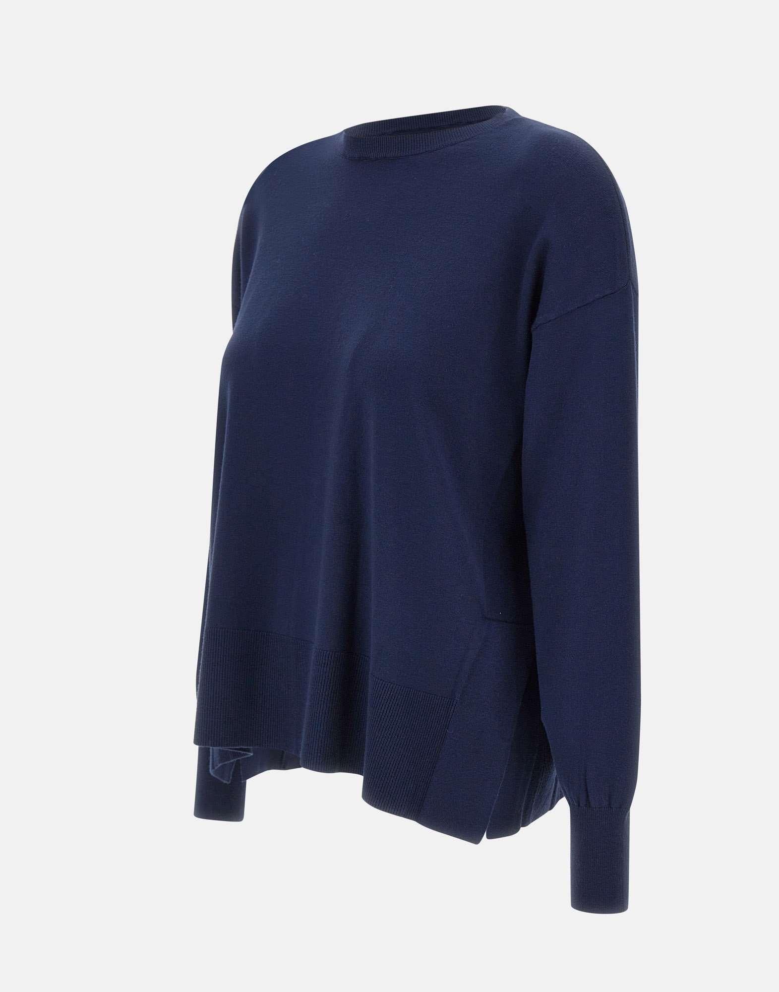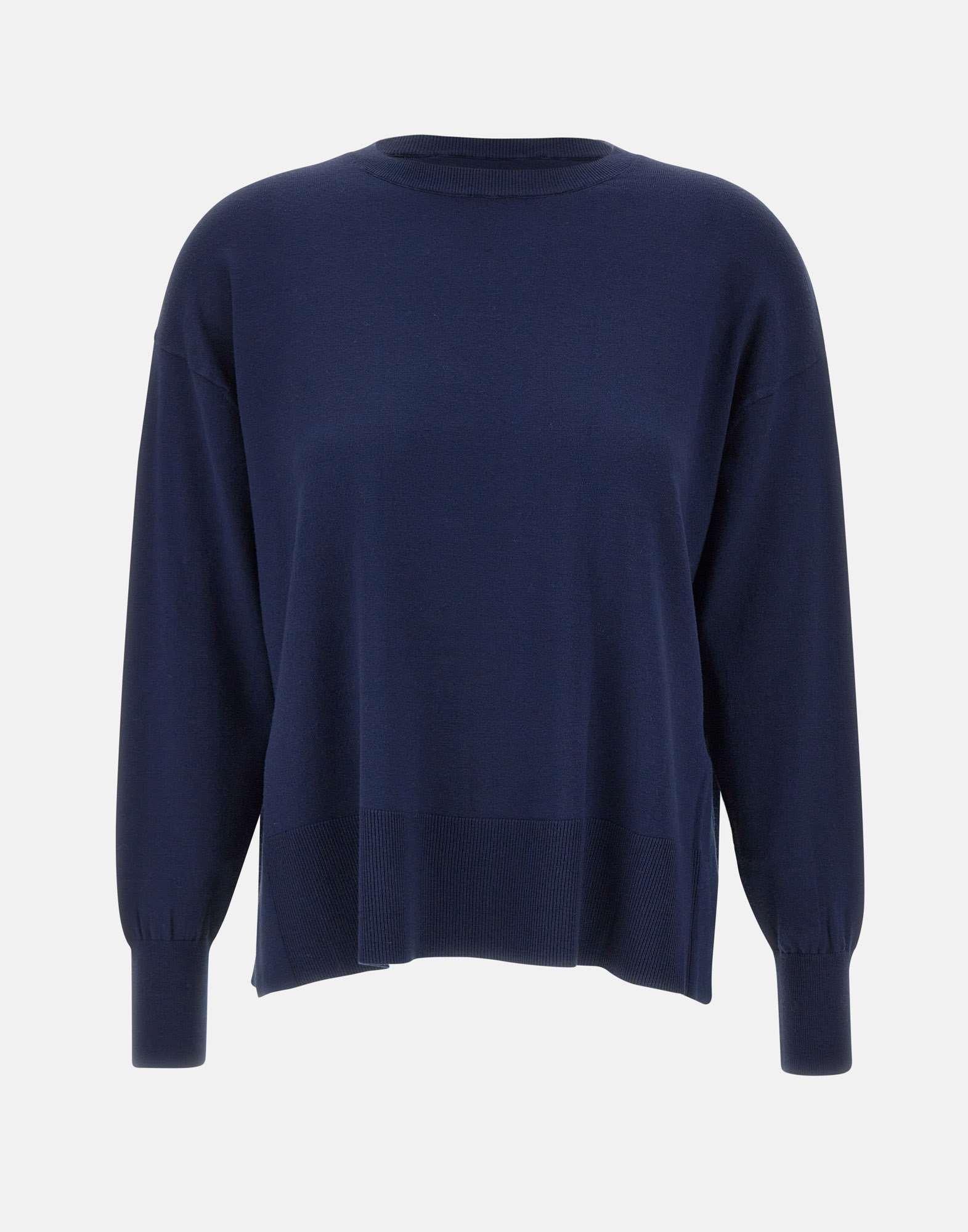 The Kaos sweater in blue, a cold-weather essential, is crafted from a viscose blend that ensures comfort without sacrificing style. The clean, contemporary design is enhanced by a classic crew neck, long sleeves with dropped shoulders, and sophisticated details like ribbed cuffs and hem. Side slits add movement to silhouette, and the relaxed fit makes it perfect for pairing with jeans, tailored trousers, or skirts for a versatile and refined look.