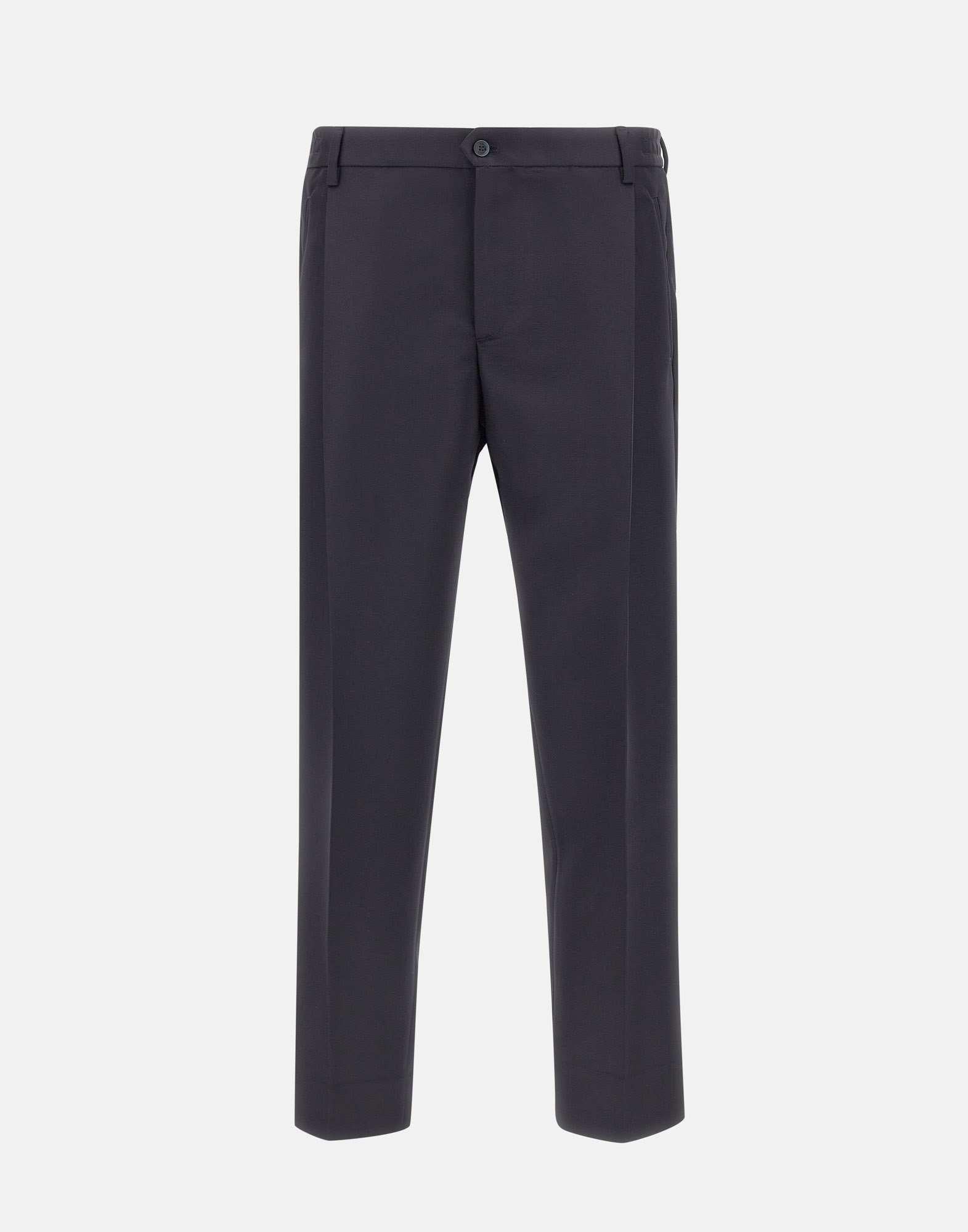 Men's Briglia 1949 "Manhattans" trousers in blue technical gabardine, representing true Italian tailoring. Features a zip and button closure, partially elasticated waistband with belt loops, side welt pockets, and back buttoned pockets. With a 20 cm leg opening and 72 cm inseam, the easy fit ensures both comfort and refined style. Made in Italy and machine washable at 30°.
