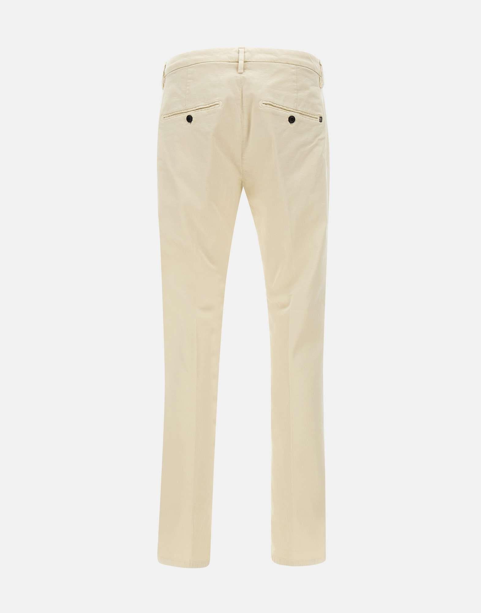 Dondup "Gaubert" men's trousers, crafted from warm and comfortable stretch cotton gabardine. The garment-dyed cream color lends an elegant and versatile look. These slim-fit trousers are designed to perfectly adapt to the male silhouette, with a 17 cm leg for a modern and refined look. The belt loops allow you to add a belt, while the snap button and zip closure ensure practicality and style. The side slant pockets and back buttoned pockets offer a functional design and a touch of elegance. A mini logo patch with a metal initial adds a touch of class to the garment. With an inseam length of 83 cm (size 34), these trousers are ideal for an elegant and contemporary look.