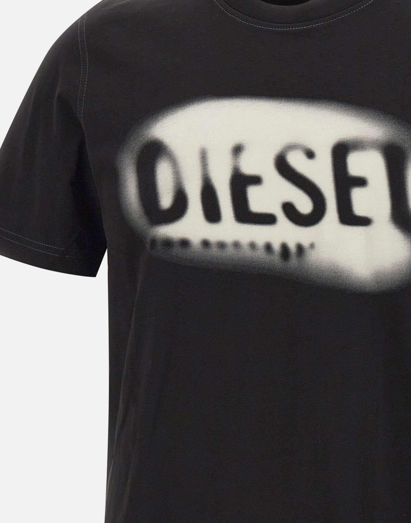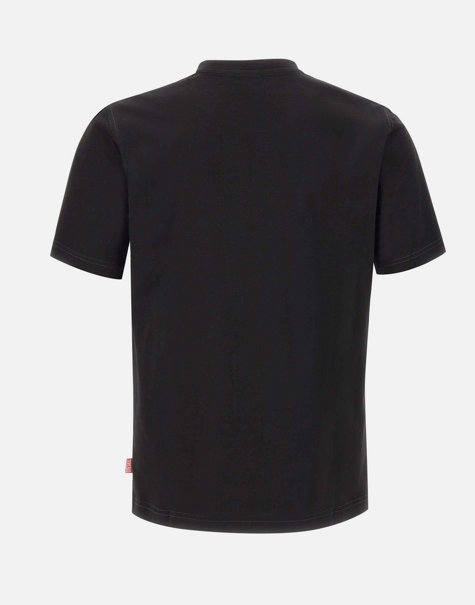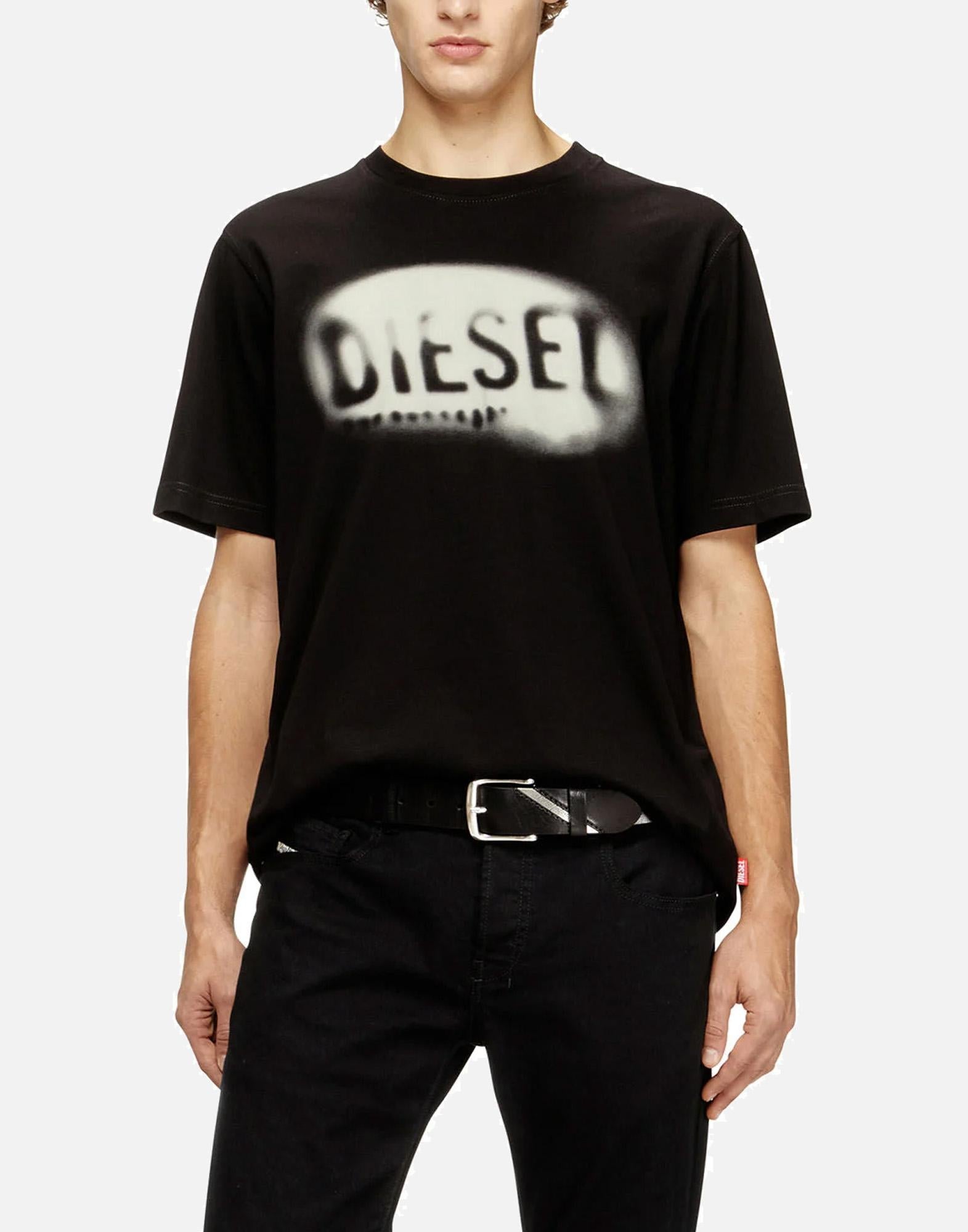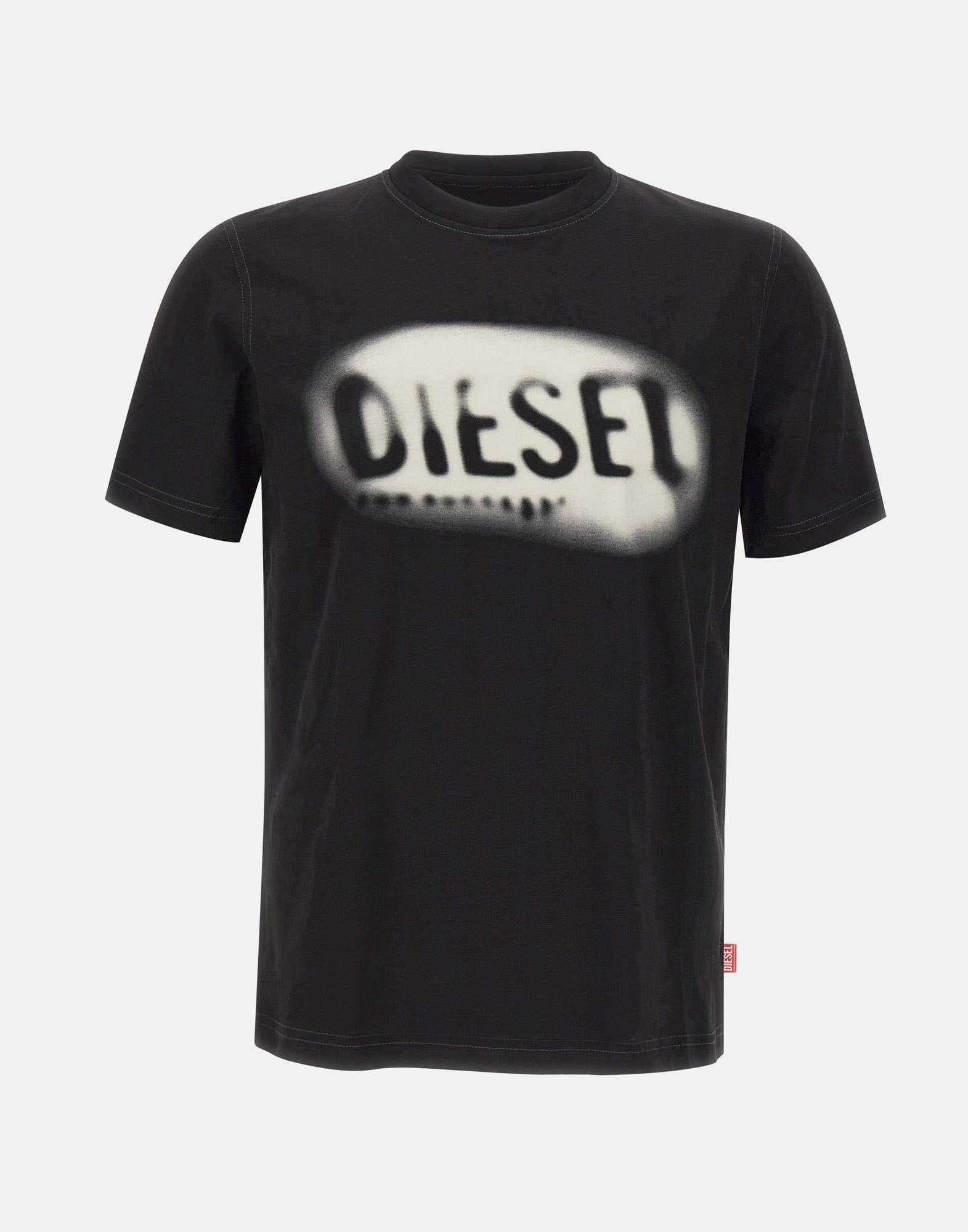 Diesel "T-Adjust-V2" mens T-shirt crafted from soft black organic cotton jersey. Features a crew neck, short sleeves, and a regular fit for everyday comfort. The faded, solarized Diesel logo print on the front adds a contemporary touch, while the red jacquard logo tag on the side seam completes the look with a signature detail.