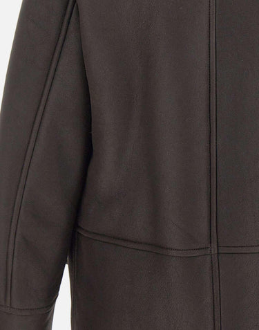 Boss "L-Mabano" men's dark brown shearling jacket, made in Italy with a peacoat-style design that combines elegance and functionality. The natural fur lining ensures thermal insulation and comfort, while Kent collar and notched lapels add a tailored touch.