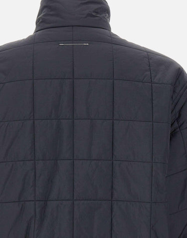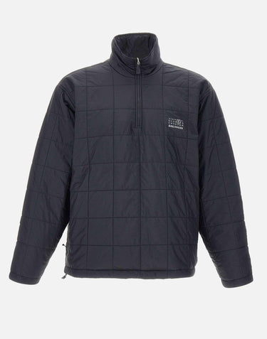 The MM6 Maison Margiela x Salomon jacket, in black nylon, represents the perfect combination of avant-garde aesthetics and technical functionality. Featuring a sweatshirt-effect construction with quilted synthetic padding, it features a stand-up collar, half-zip closure, dropped shoulders, and an adjustable drawstring hem for a modern and relaxed fit. The design is completed by side zip pockets, the MM6 x Salomon label on the front, and the Maison's iconic white stitching on the back. Relaxed fit.