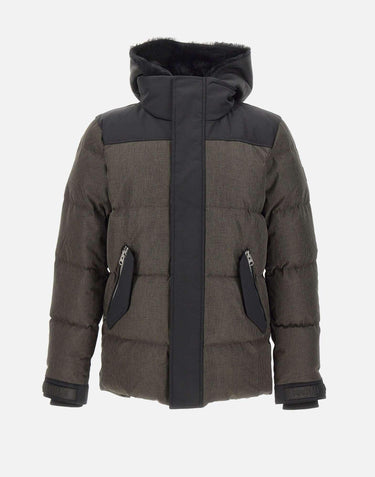 The Mackage "RileyMht" men's down jacket in charcoal is designed to provide maximum thermal protection down to -20°C. Crafted from waterproof, water-repellent, windproof, and breathable technical fabric, it features a removable shearling bib and integrated hood for customizable comfort.