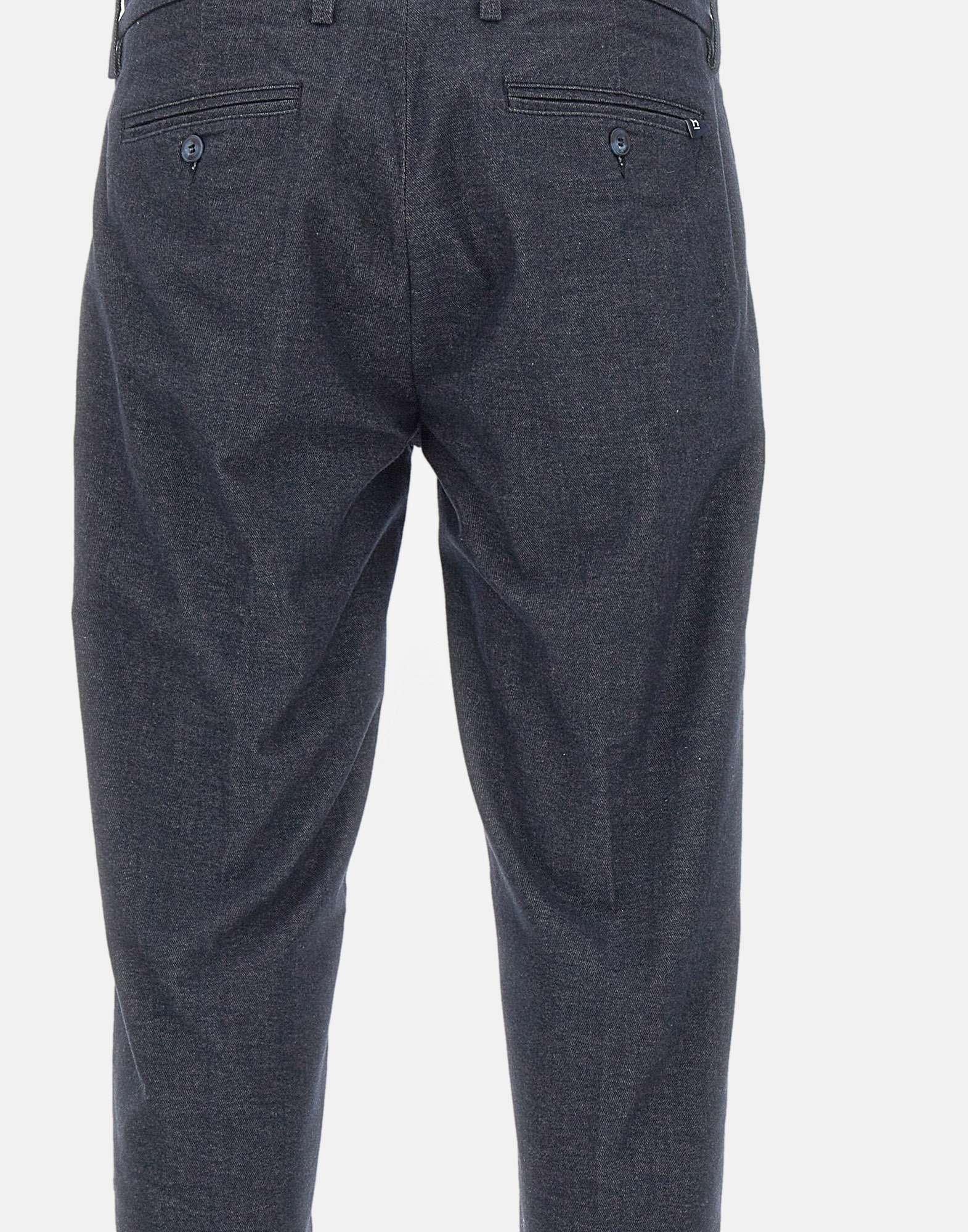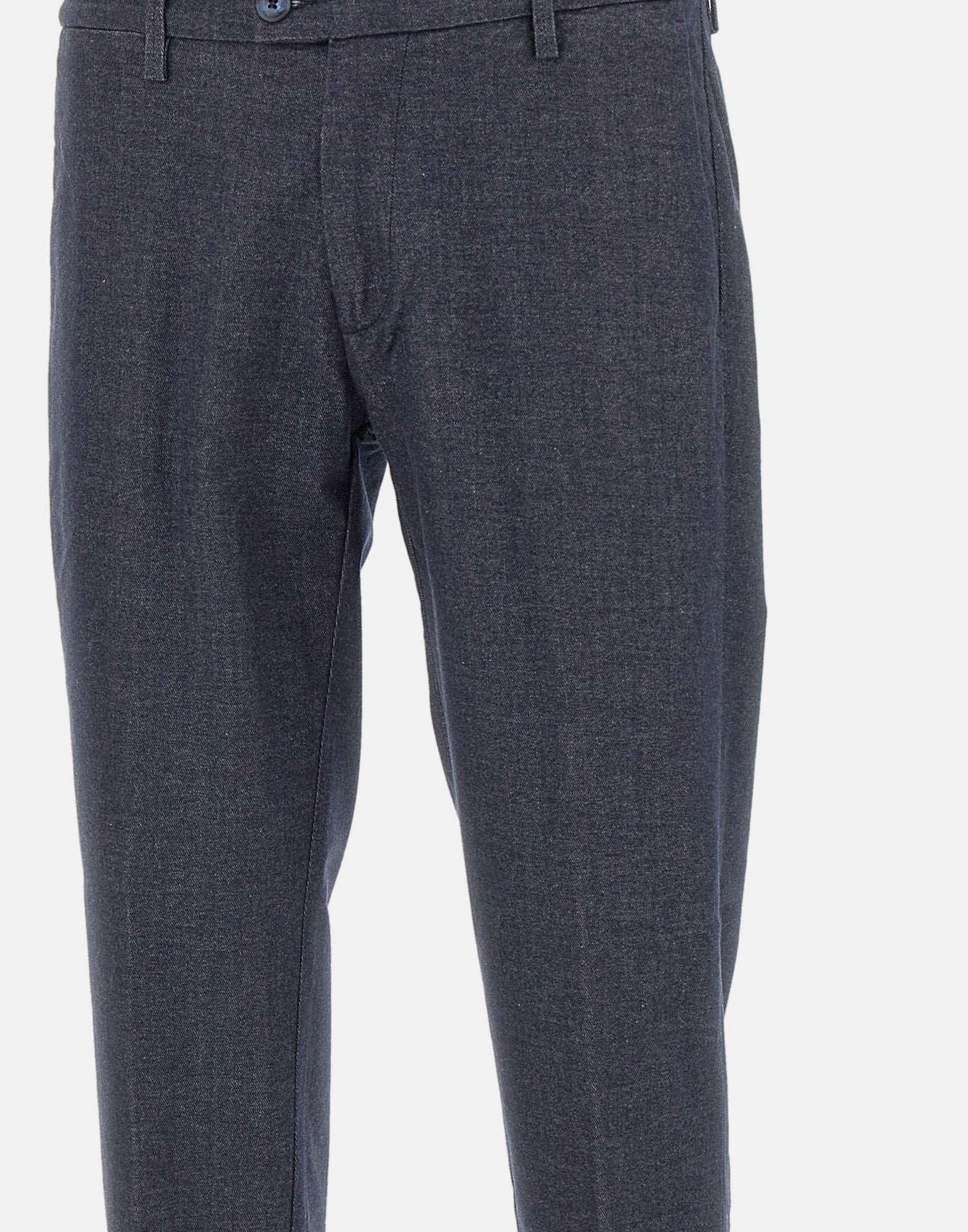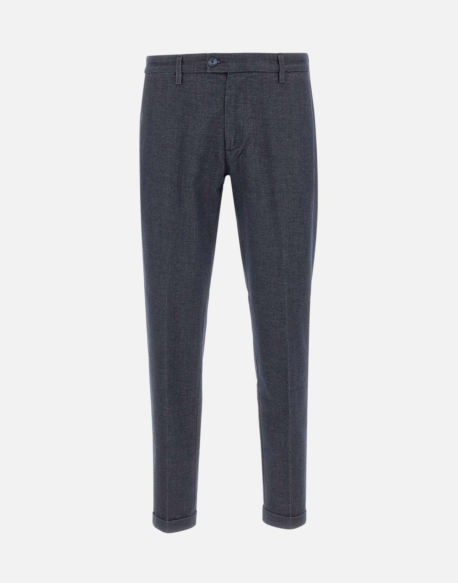 Re-Hash "Mucha-10" men's pants in dark blue cotton blend with denim effect finish. Featuring a tailored cut with front pleats, Italian side pockets, back pockets with button and logo label, and concealed zip and button closure. Finished with a 2,5 cm turn up hem for a clean, refined silhouette. A versatile piece that blends elegance with a smart casual attitude. Made in Italy. Bottom width: 17cm.
