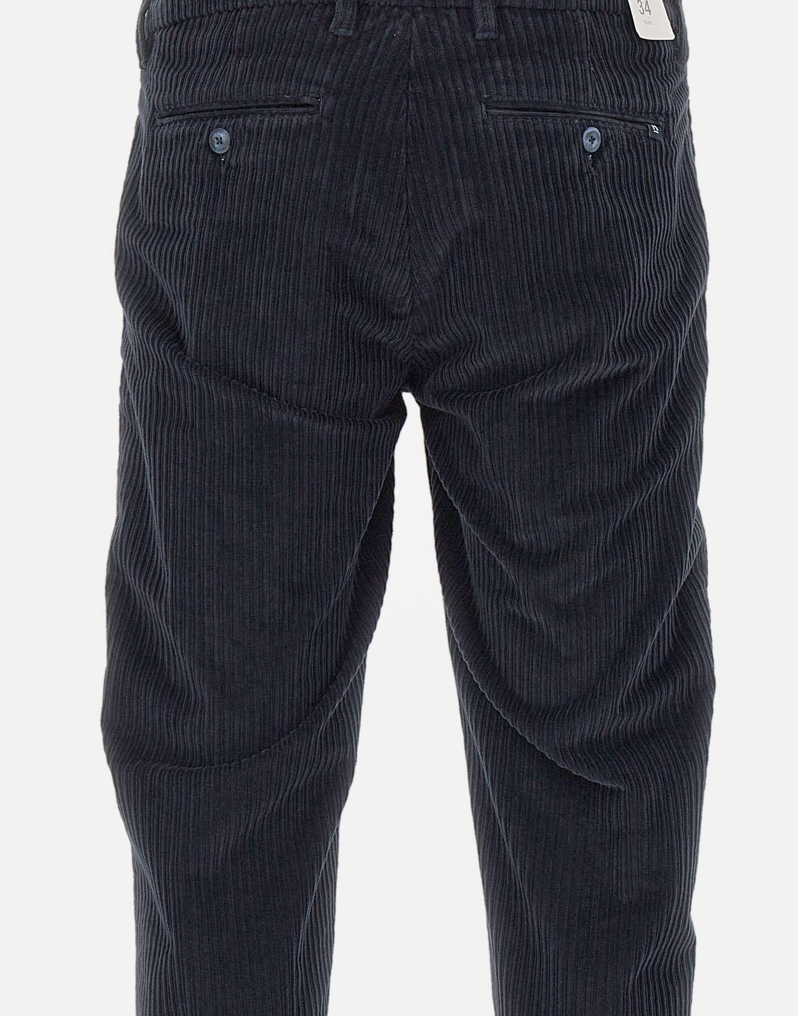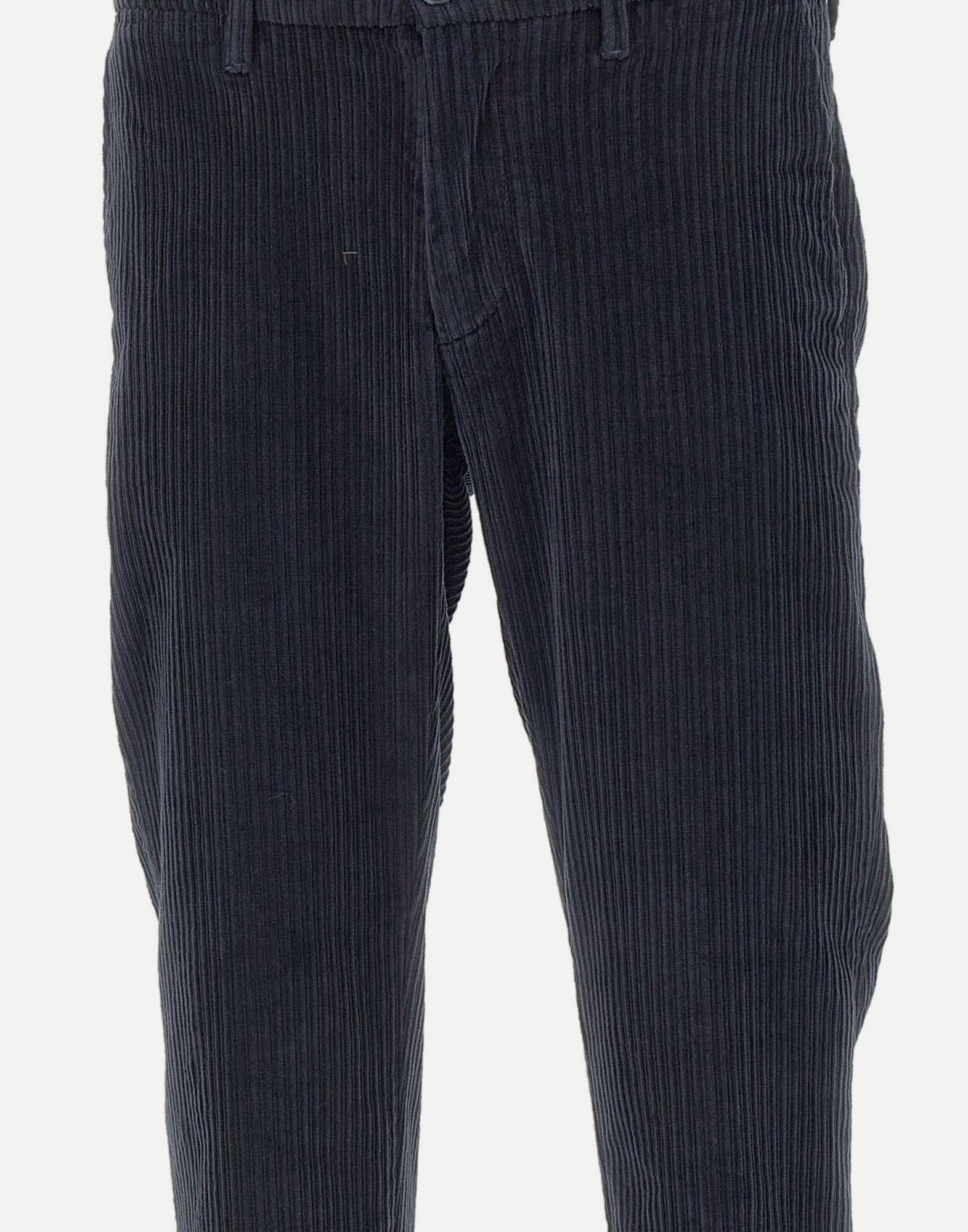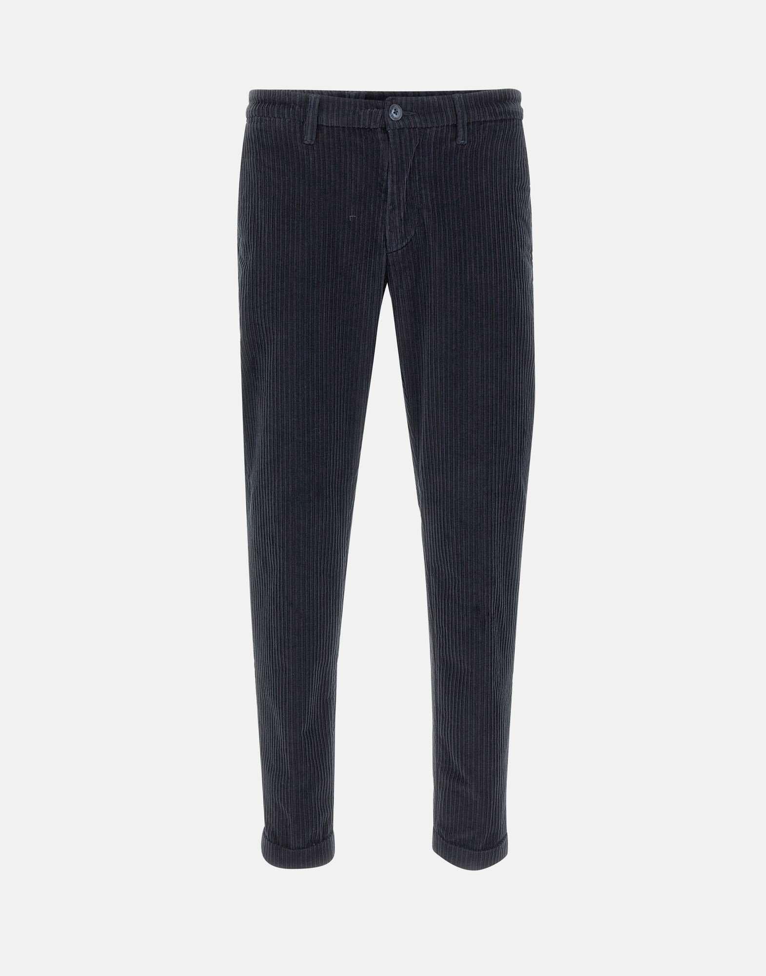 Re-Hash "Mucha" men's pants in soft navy blue corduroy cotton, featuring a straight cut and elegant texture. Designed with front Italian pockets, back pockets with button and logo label, and a zip and button closure. Finished with a 3 cm turn up hem for a tailored touch. A refined and versatile piece for casual elegance. Made in Italy. Bottom width: 17 cm.