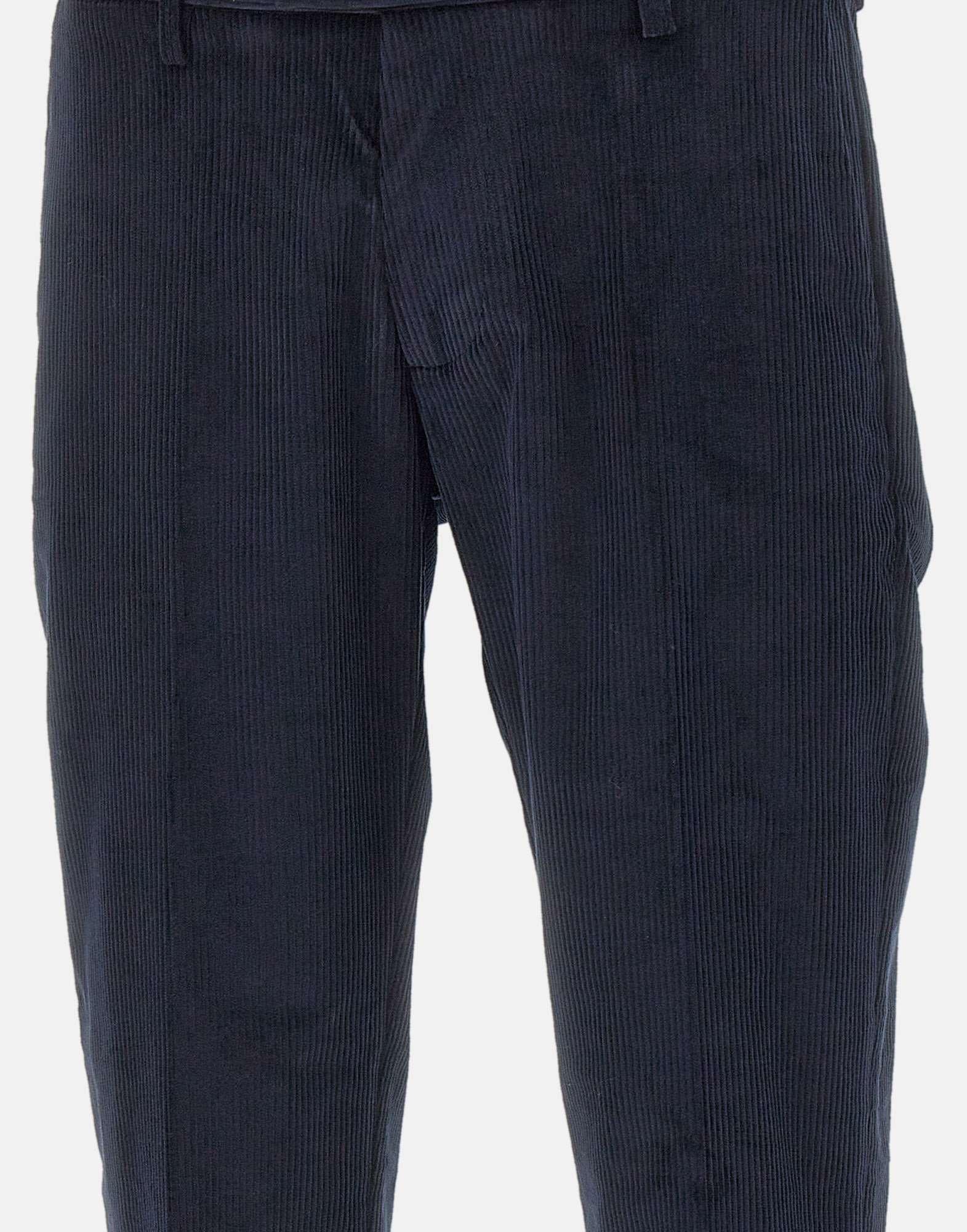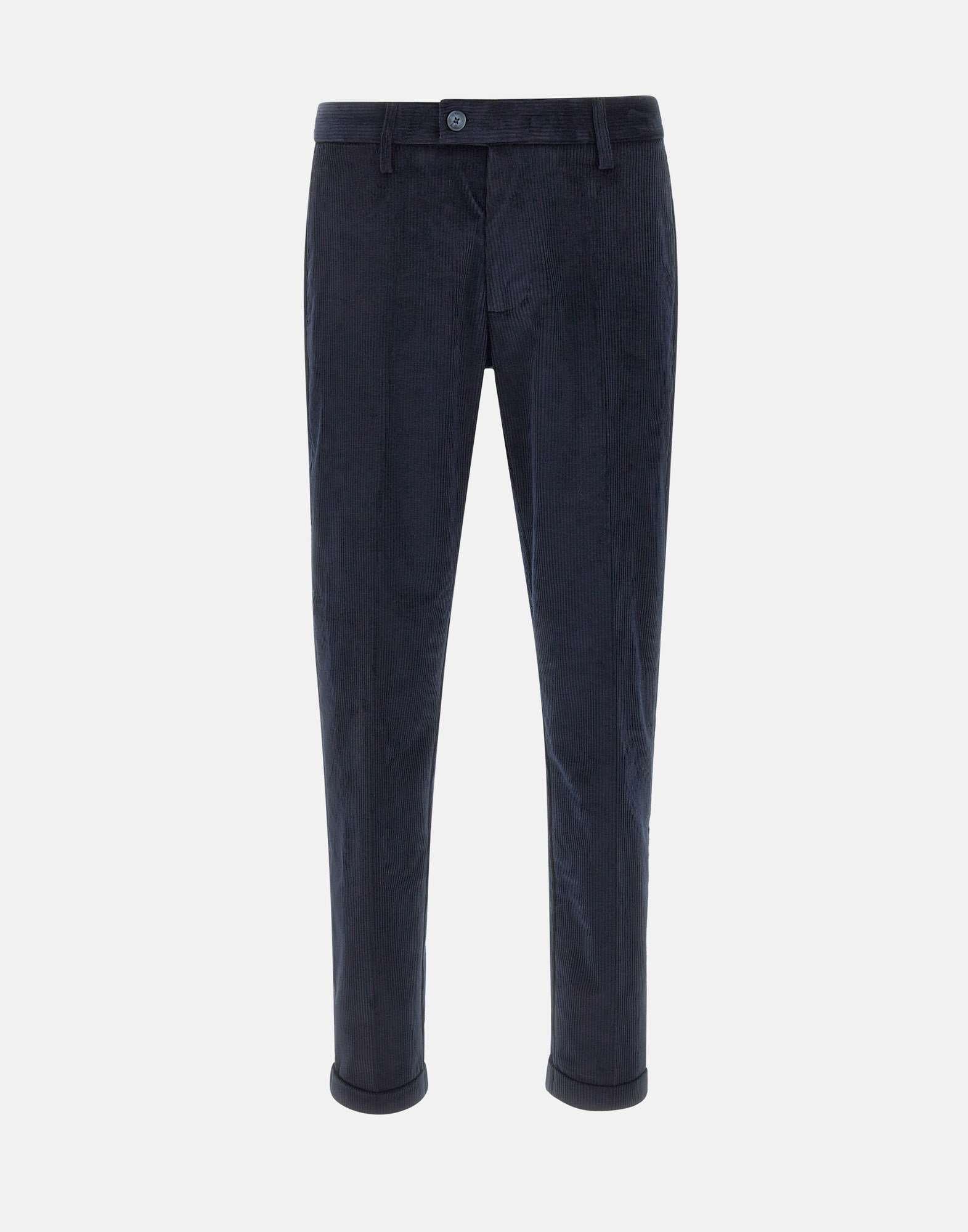 Re-Hash "Mucha10" men's trousers in black cotton blend, featuring a tailored cut and refined construction. Designed with a mid rise waist, front pleats, Italian side pockets, and back pockets with button and logo label. Concealed zip and button closure, finished with a 2,5 cm turn up hem. A versatile and elegant piece for both formal and smart casual looks. Made in Italy. Bottom width: 18cm.