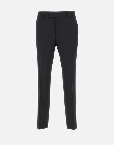 BOSS men's trousers in soft black wool blend with two-way stretch fabric for comfort and ease of movement. Designed with a sleek, tailored silhouette, featuring hook-and-zip closure, slanted side pockets, and rear welt pockets. Partially lined for structure and durability. A timeless formal essential that brings modern elegance to any occasion.