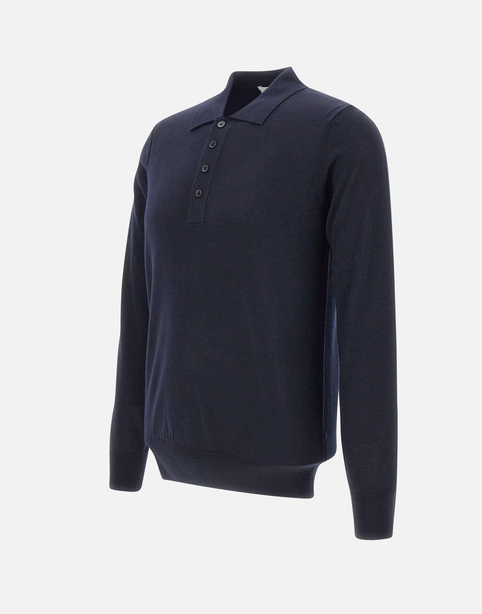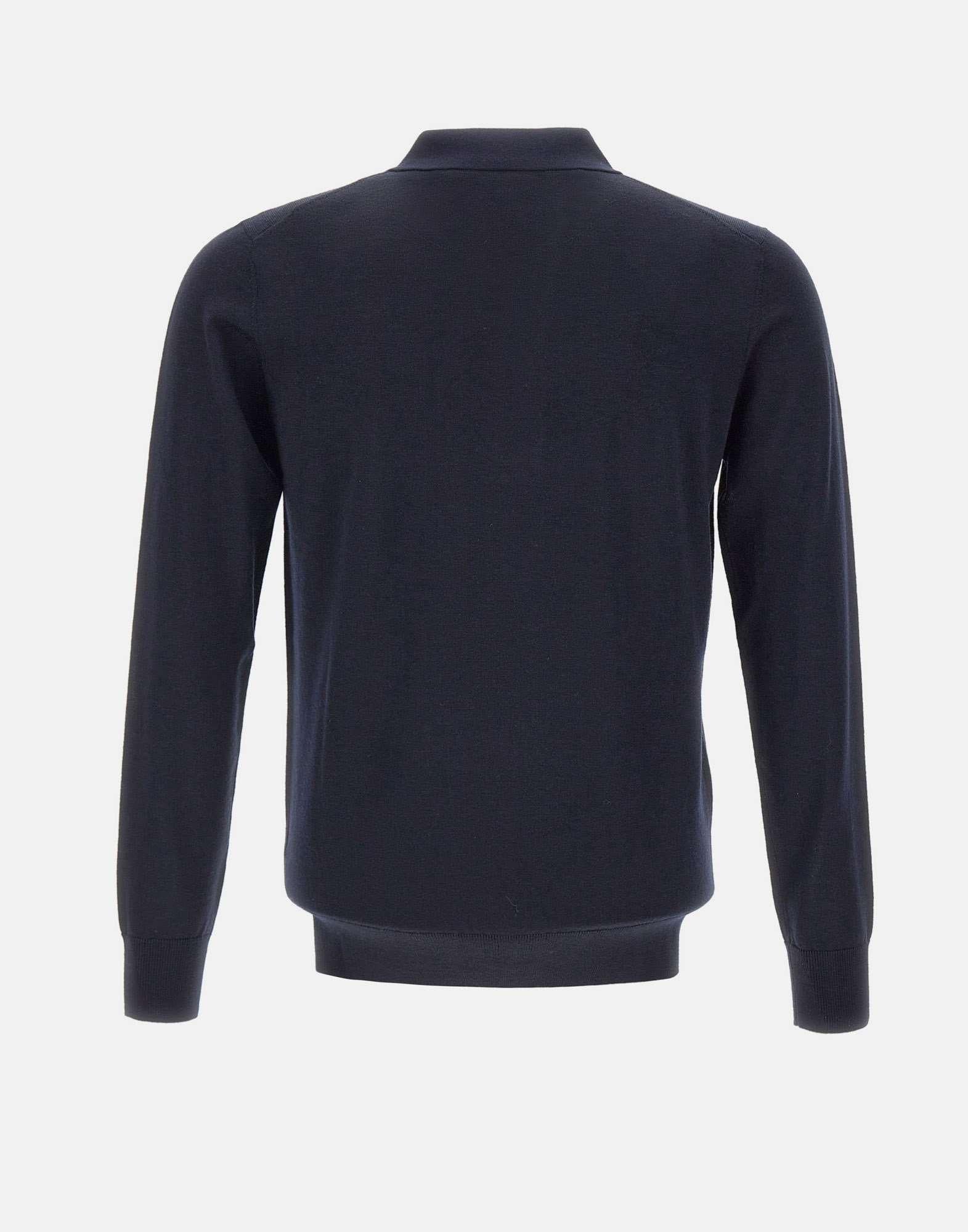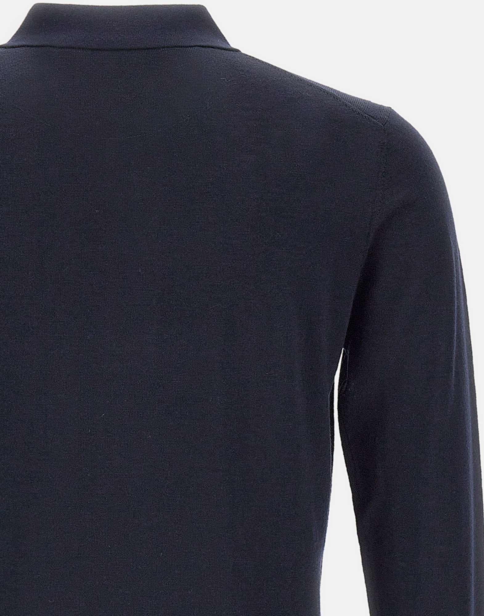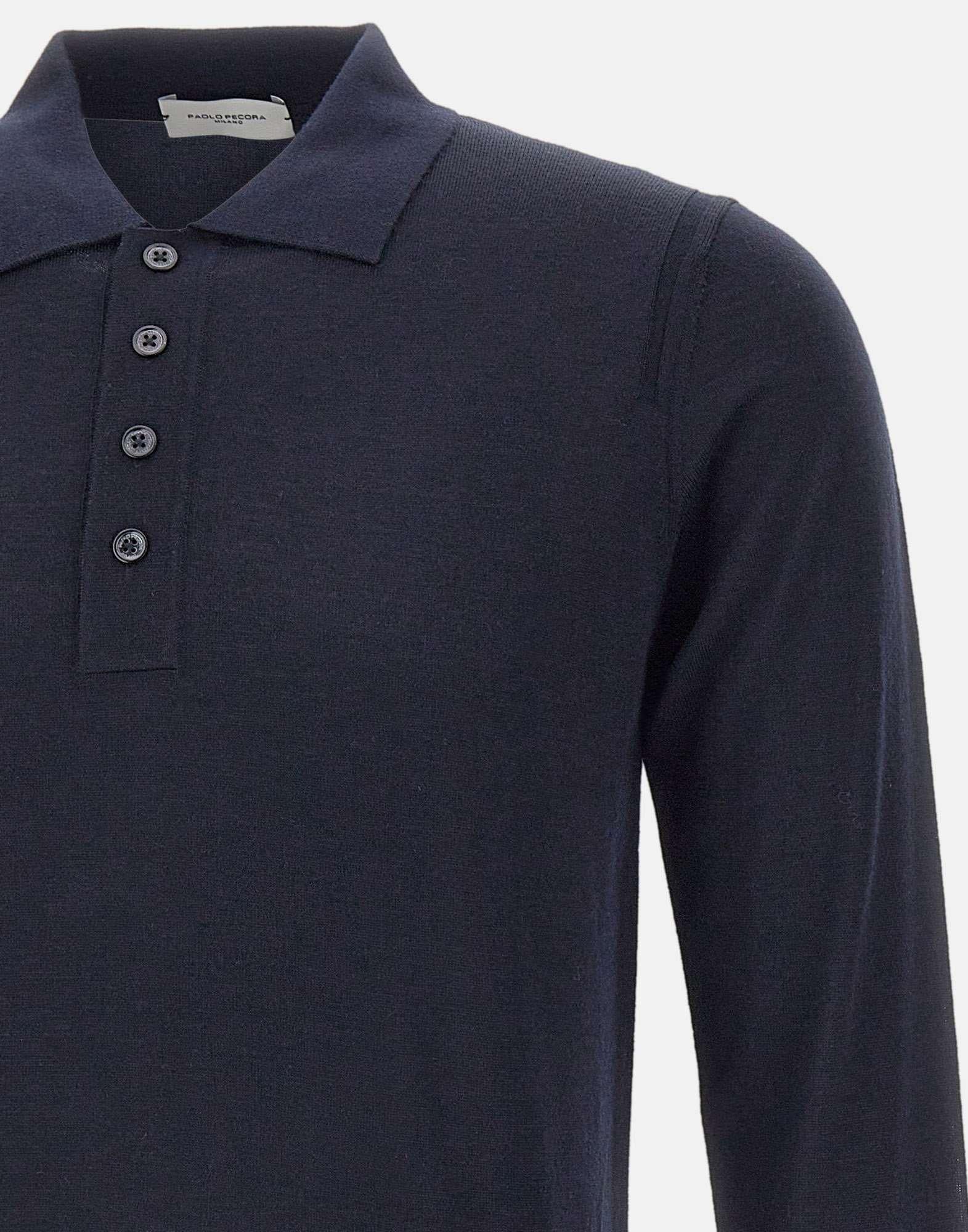 Paolo Pecora men's wool polo shirt, navy blue, long sleeves, super warm and comfortable thin yarn, classic collar with matching button closure, ribbed edges, regular fit.