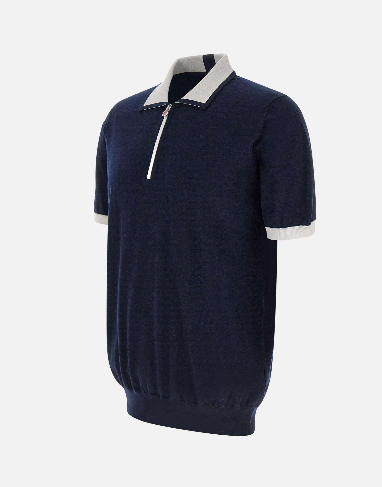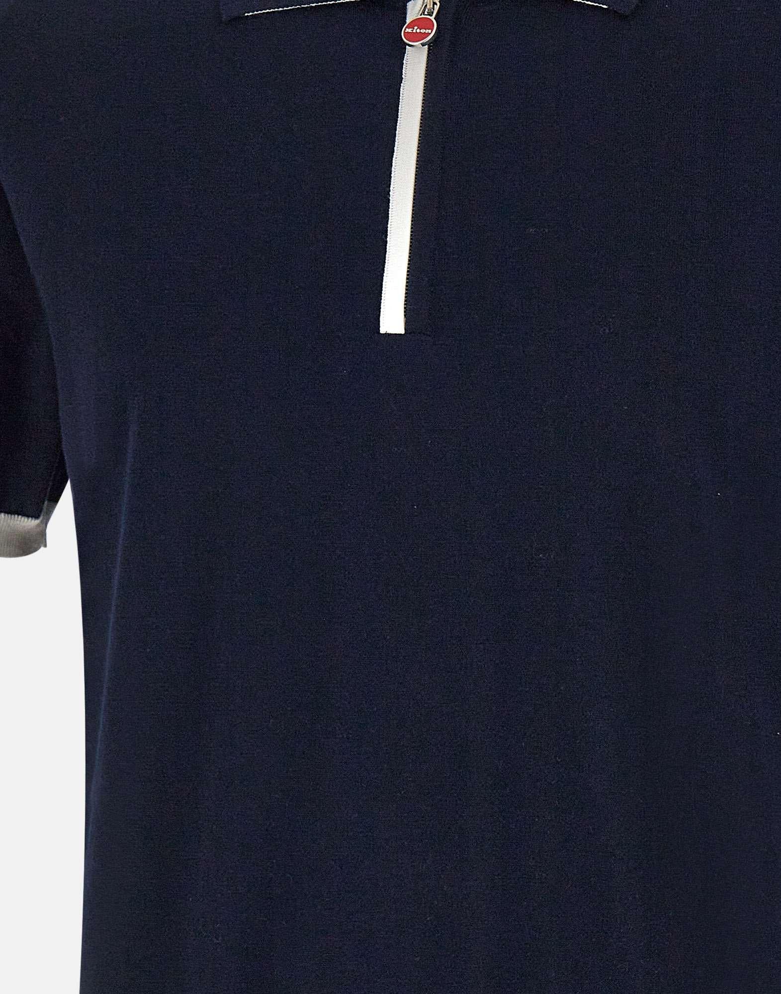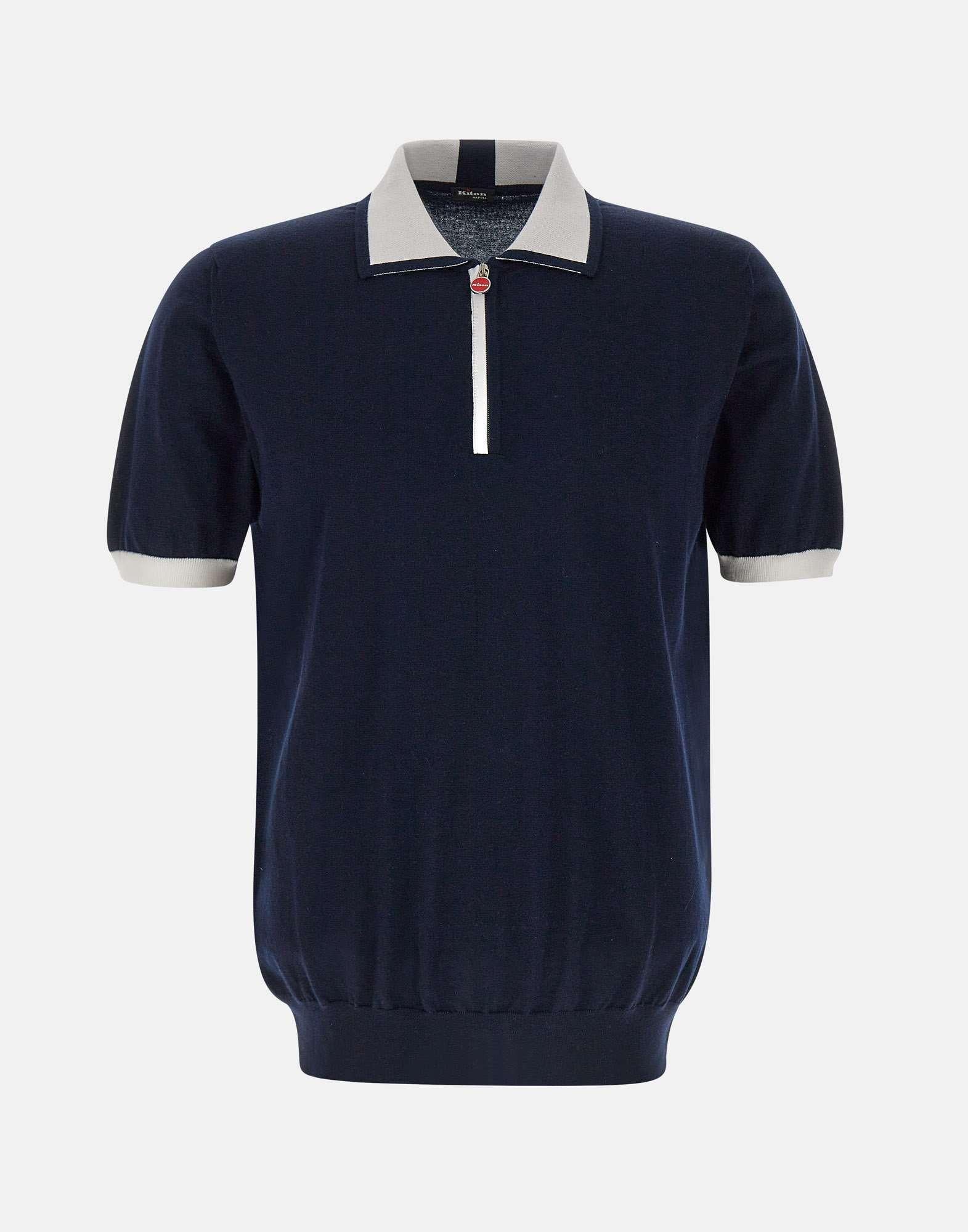 Sartorial elegance and casual comfort meet in Kiton polo shirt, crafted from high-quality cotton yarn, available in a versatile blue with contrasting white trim. A simple piece with a refined design. Featuring short sleeves, a classic collar, and ribbed edges, it features a practical half-zip closure with a logo puller, a distinctive Kiton detail. A regular fit, it's ideal for any body type. Crafted with the trademark Made in Italy craftsmanship, this polo shirt represents perfect balance of luxury, functionality, and style.