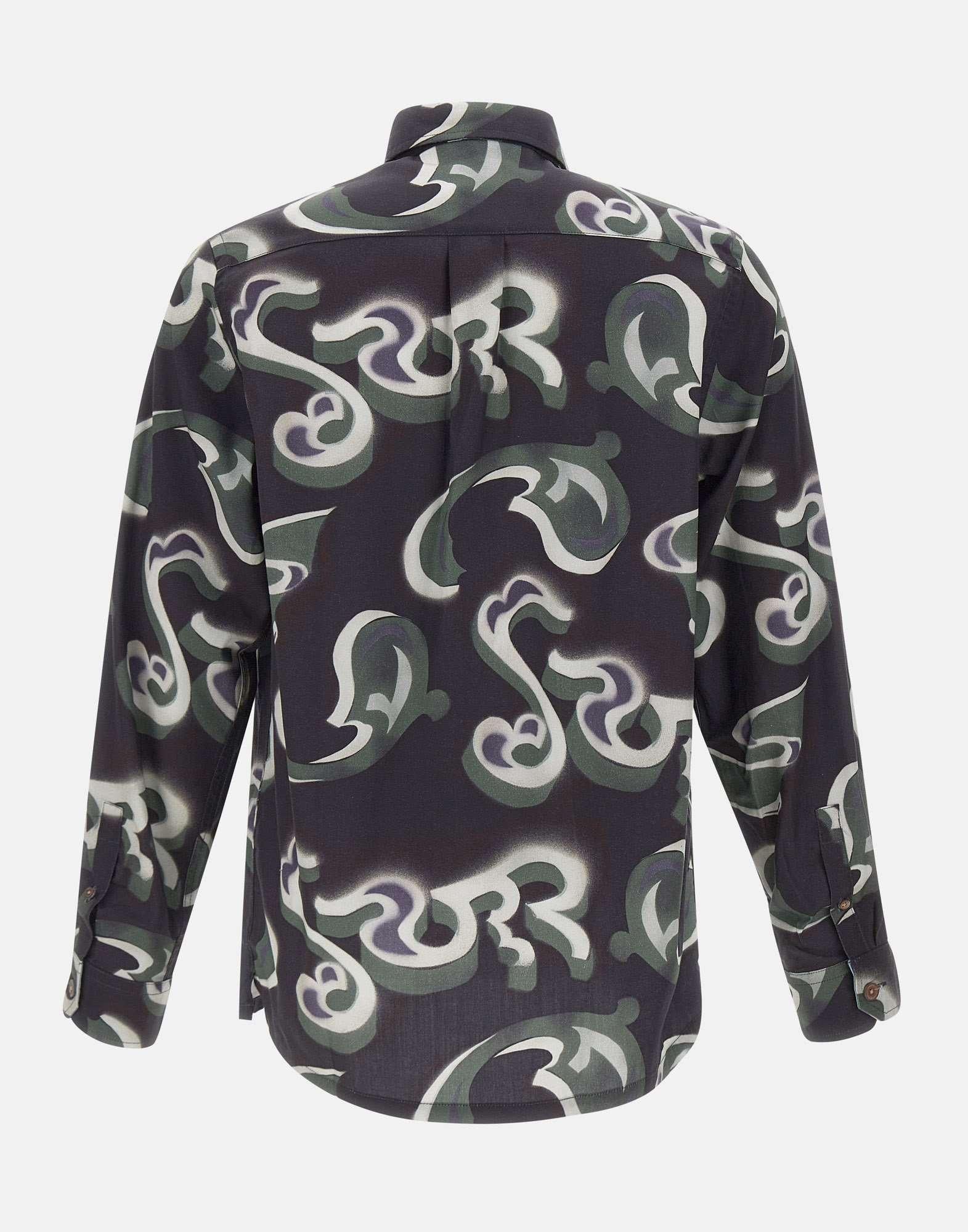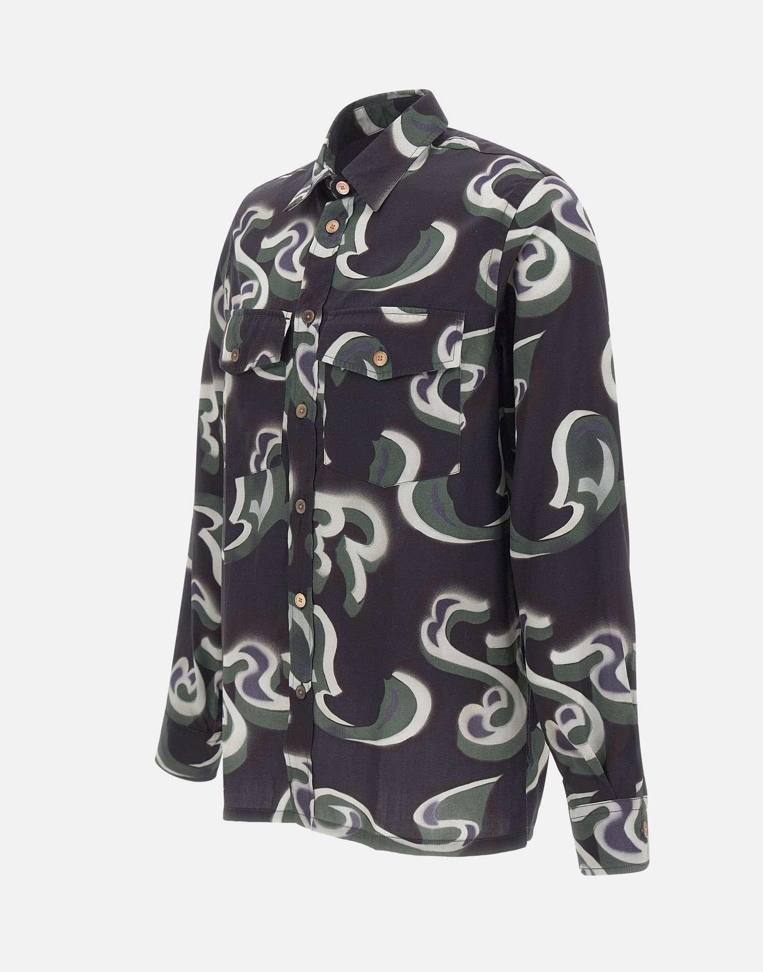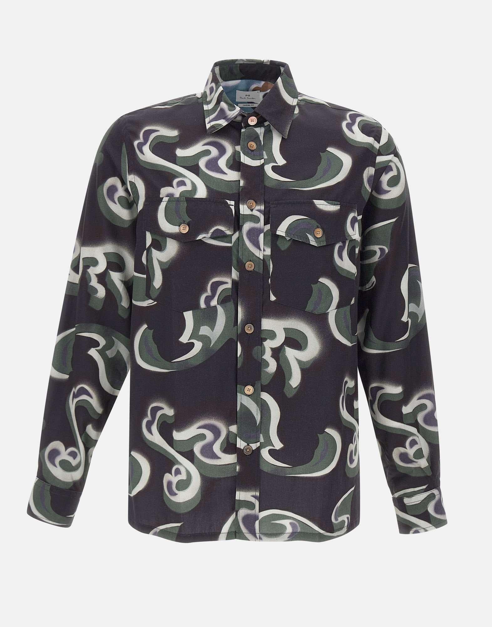 Originality and quality meet in PS Paul Smith "Casual Fit" shirt, crafted from a refined cotton and lyocell blend twill for a soft, lightweight feel. The design features distinctive all-over green "Waltzer" motif, which stands out against a black background. The shirt features long sleeves, a classic collar, mother-of-pearl button closure, and dual-use button cuffs. Two patch pockets on chest add a functional, casual touch. The casual fit ensures comfort without sacrificing style.