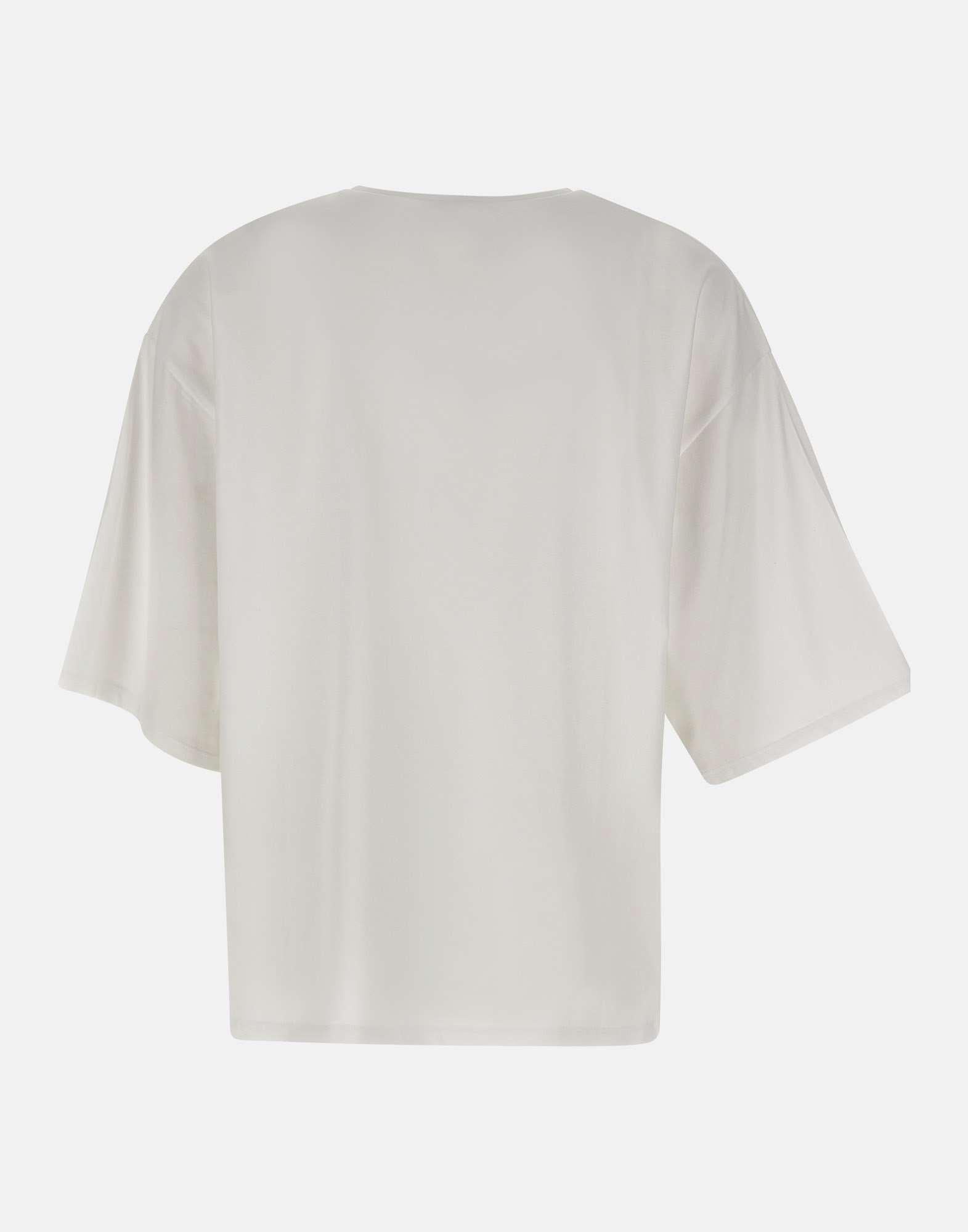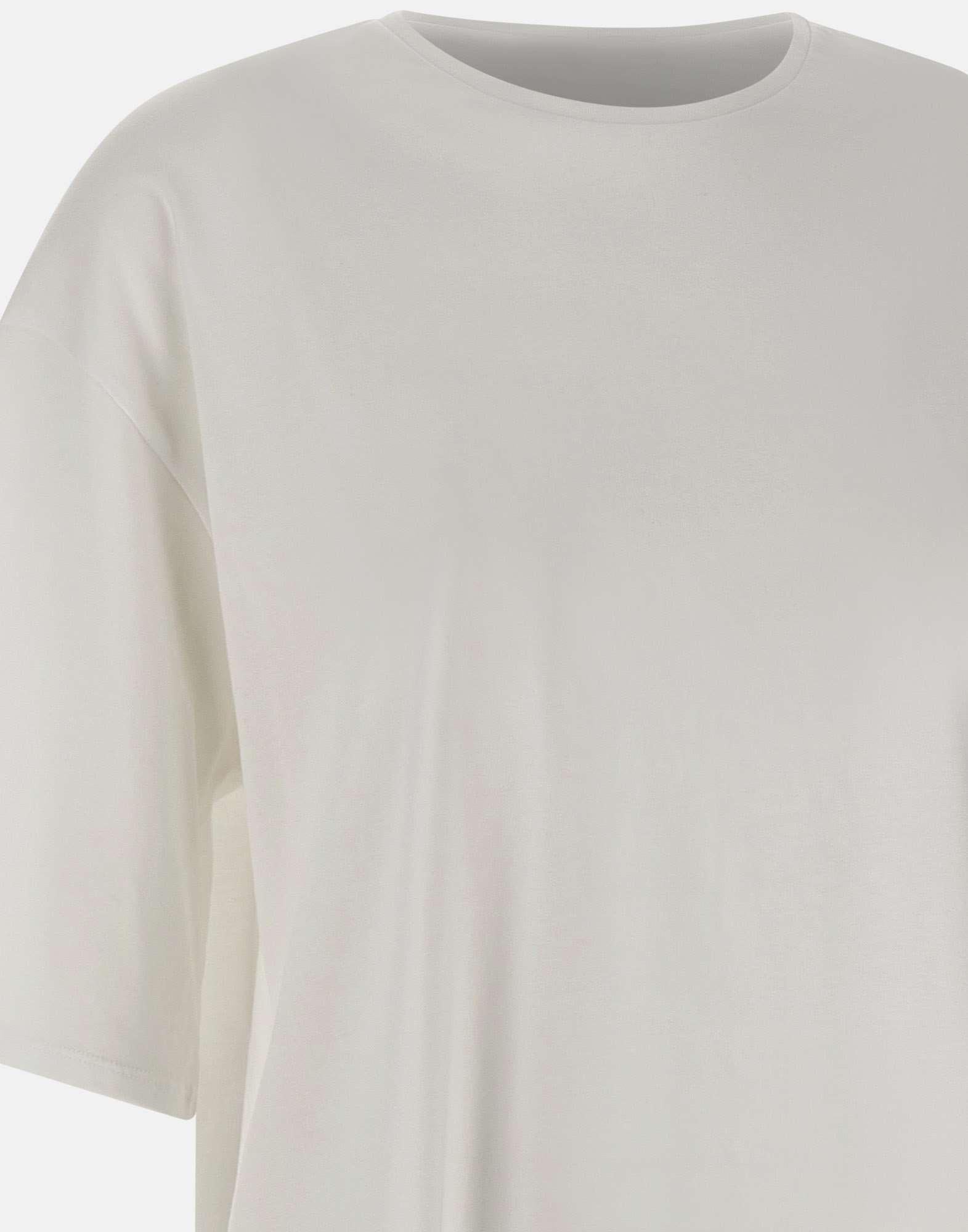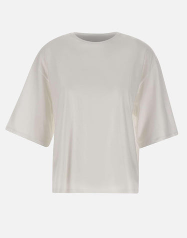 Loulou De Saison "Osis" women's T-shirt crafted from white Supima cotton, chosen for its softness, lightness and durability. Designed with an oversized, boxy cut and dropped shoulders, it creates a modern and relaxed silhouette. Finished with a round neckline and short sleeves, it is a clean, contemporary essential for everyday styling.