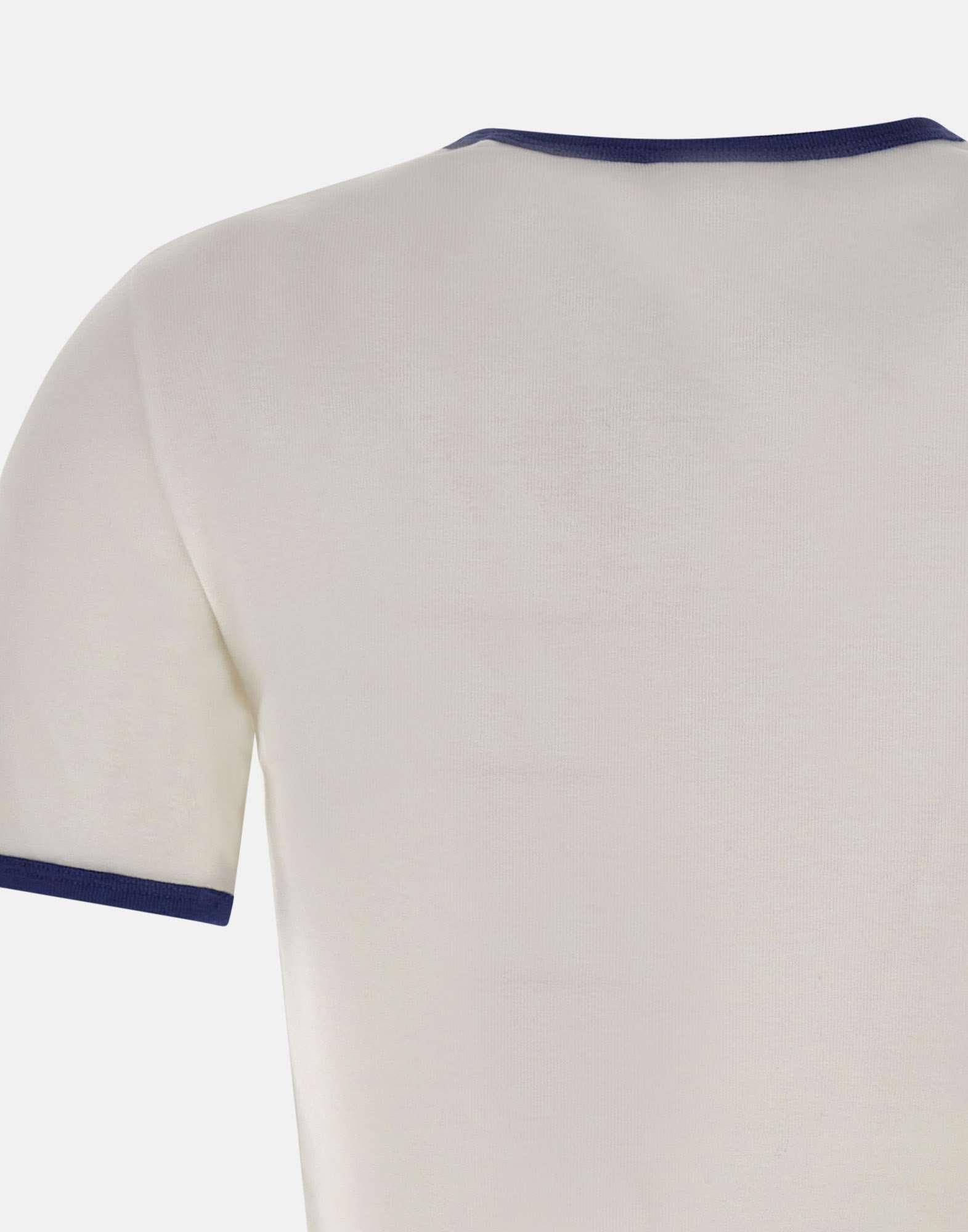 Courrèges women's "Signature Contrast" t-shirt, crafted from white cotton with contrasting blue trim. The design features short sleeves, a round neck, and a mini embroidered logo on chest. Regular fit for a clean, refined style.