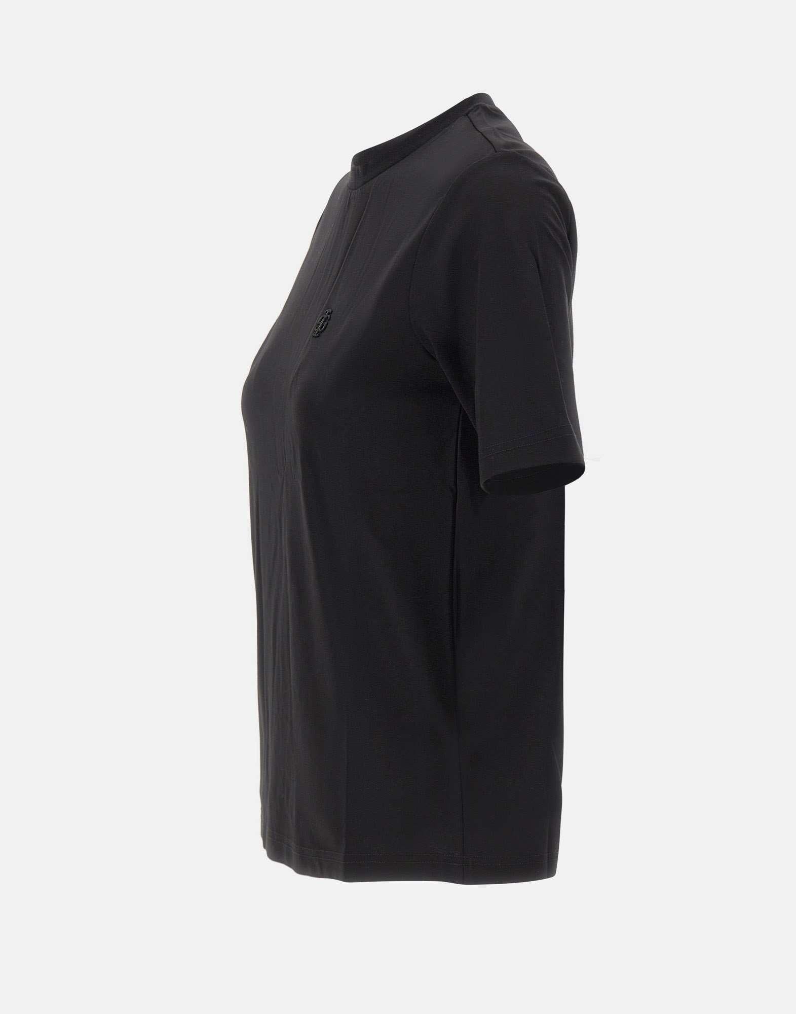 "Tg logo tee" The Garment women, black color, stretch viscose blend fabric, short sleeves, crew neck, tone-on-tone mini embroidered logo on chest, oversized proportions on regular fit.