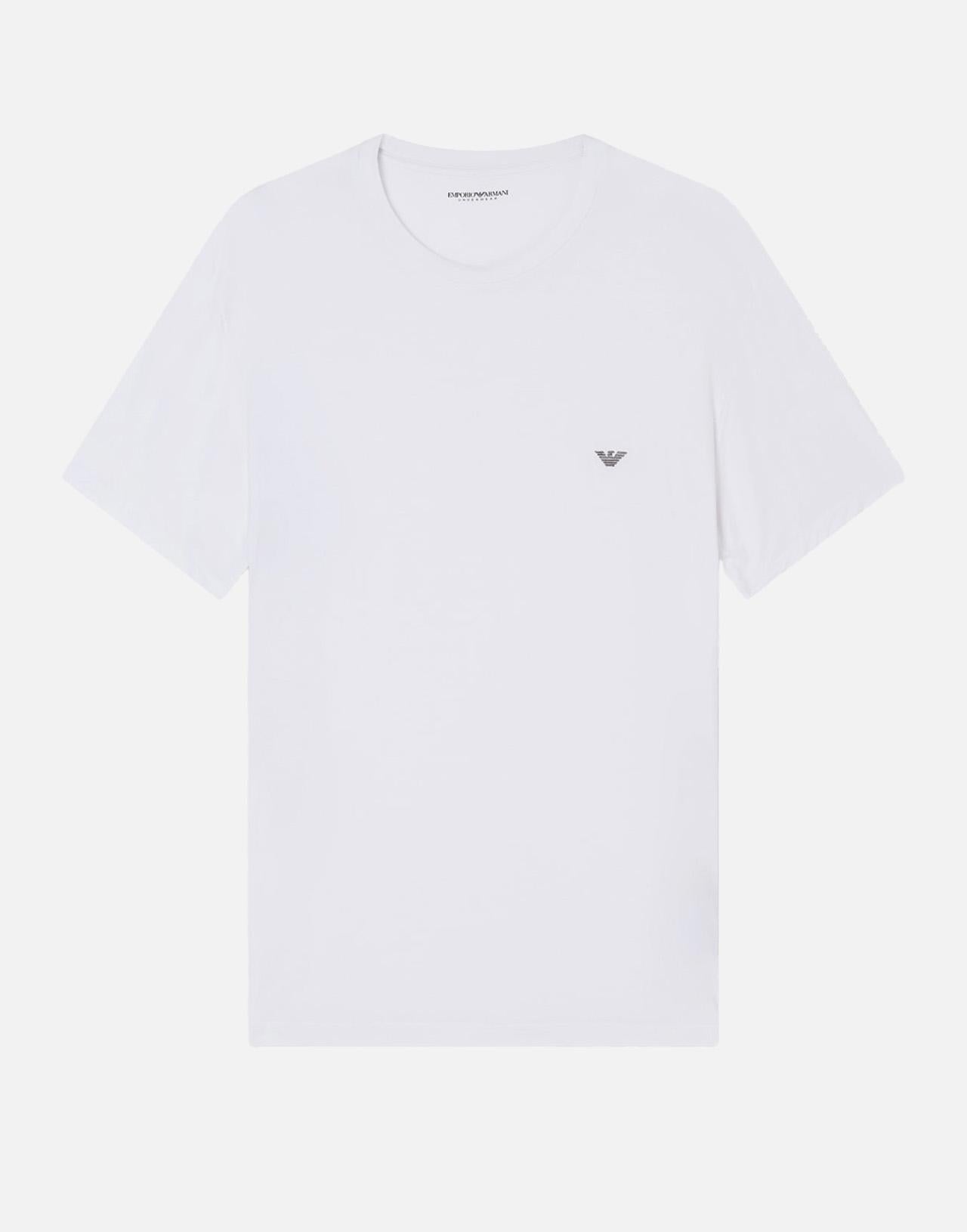Simple, clean, and sustainable: Emporio Armani "Crew Neck Fitted" T-shirt is a versatile piece made from high-quality organic cotton in white. It features a classic crew neck, short sleeves, and a regular fit that hugs body without restricting it. The Emporio Armani logo on chest adds a subtle yet recognizable touch.