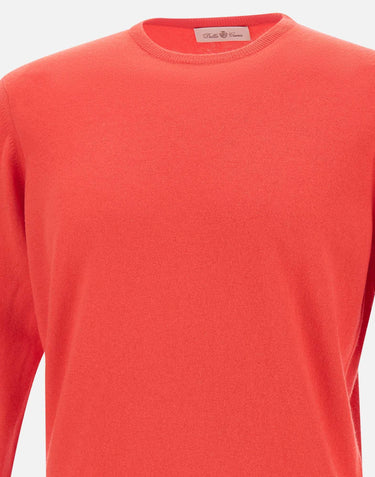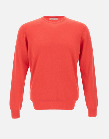 Della Ciana Cashmere sweater made from a fine wool and cashmere blend, coral orange, 12 gauge, with a soft and lightweight feel. It features a crew neck, long sleeves, ribbed edges, and a regular fit. A simple and refined piece, perfect for casual looks or under a jacket. Made in Italy.