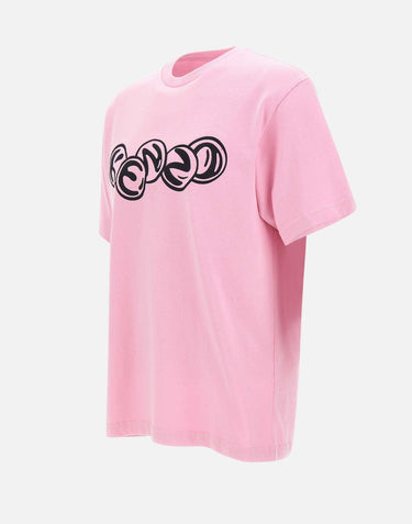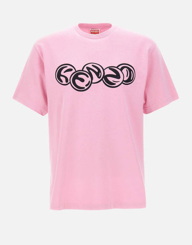 Mens Kenzo Paris "Pachinko" t-shirt, crafted in pink cotton. Features short sleeves, crew neck, and bold contrasting maxi logo printed on chest for a striking look. Relaxed fit.