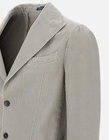 Men's ‘Camaldoli’ cotton blazer by Marchesani made on micro-ribbed fabric, grey-coloured, collar with peaked lapels, two-button placket, button cuffs, back slits, front pockets, breast pocket, inside pocket, slim fit, made in Italy