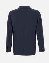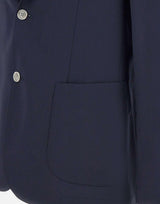 Blazer uomo Barba in lana, blu, collo con rever a lancia, chiusura con due bottoni a contrasto di colore, tasche anteriori, tasca interna, foderato in viscosa, polsini con bottone, spacchi laterali sul retro, slim fit.