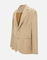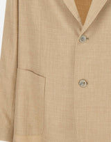 Blazer uomo Barba in lana, seta e lino, sabbia, tessuto extra prezioso al tatto e confortevole all'indosso, design sartoriale, collo con rever a lancia, chiusura con due bottoni, tasche anteriori, tasca interna, foderato in viscosa, polsini con bottone, spacchi laterali sul retro, slim fit.