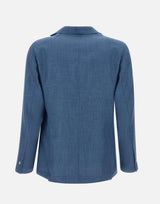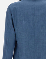Blazer uomo Barba in lana, seta e lino, blu denim, tessuto extra prezioso al tatto e confortevole all'indosso, design sartoriale, collo con rever a lancia, chiusura con due bottoni, tasche anteriori, tasca interna, foderato in viscosa, polsini con bottone, spacchi laterali sul retro, slim fit. Made in Italy