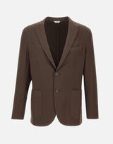 Blazer Boglioli "Maine" uomo, colore tabacco, realizzato in pura lana pregiata della High Performance Collection, che garantisce elasticità, comfort e resistenza alle pieghe. Presenta rever stretto, chiusura con due bottoni logati in tinta, polsini con bottoni, tasche anteriori a toppa e taschino con pochette coordinata. Maniche foderate per un maggiore comfort e struttura leggera. Regular fit. Made in Italy.