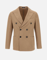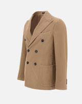 Men's ‘Vanvitelli’ Marchesani made of cotton on micro oblique striped fabric blazer, camel color, collar with peaked lapels, double-breasted closure with contrasting buttons, buttoned cuffs, back slits, front pockets, breast pocket, inside pocket, slim fit, made in Italy