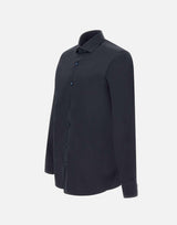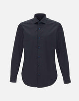 Barba men's cotton shirt, midnight blue colour, classic collar, tone-on-tone mother-of-pearl effect button closure, buttoned cuffs, rounded hem, slim fit. Made in Italy.Hand sewn.