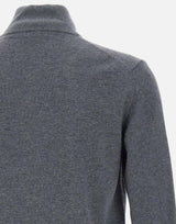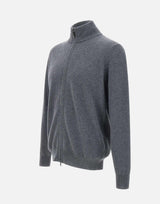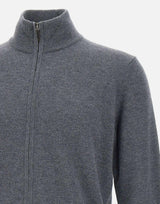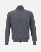 Kangra men's extrafine merino wool cardigan, grey, long sleeves, full zip fastening with double slider, stand-up collar, ribbed profiles, regular fit, made in Italy.