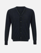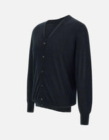 Kangra men's wool shaved cardigan, black color, long sleeves, V-neck, button closure, ribbed edges, regular fit.