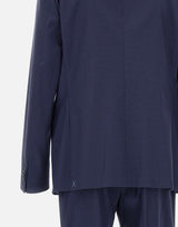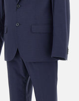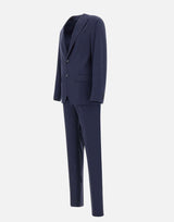 Blazer with lapel collar, closure with two matching buttons, cuffs with four buttons, internal pockets, front pockets with flap, chest pocket, tone-on-tone viscose lining. Trousers with hook and eye closure, internal button and zip, side welt pockets, single welt back pockets with buttons, regular waist with belt loops, scalloped hem.Regular fit.
