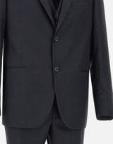 Marchesani men's fresh wool and silk three-piece suit with textured fabric, midnight blue color.