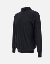 Kangra men's extrafine merino wool turtleneck, black colour, high collar, long sleeves, ribbed hems, super soft, regular fit.