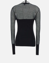 "Knit top" Andreadamo, black color, cotton and viscose blend, long sleeves, crew neck, transparent details, high ribbed cuffs, regular fit, made in Italy.