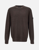 Peuterey "Badra" men's wool sweater , chocolate, bright fabric, long sleeves, crew neck, ribbed hems, iconic logo patch on left sleeve, super soft and comfortable to touch and to wear, regular fit.