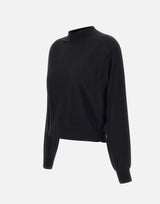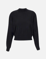 Theory "Mock" women's wool sweater, black colour, long sleeves, high crew neck, ribbed hems, regular fit.
