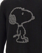 Iceberg men's black wool and alpaca blend jumper, long sleeves, crew neck, ribbed edges, maxi Snoopy logo embroidery on front, regular fit, made in Italy