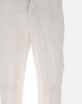 Pantaloni Fay uomo, bianco, tessuto in Gabardine Stretch, modello capri, tinto in capo, etichetta Fay sul retro, passanti per cintura, chiusura con bottone, gancetto e zip, fondo 17cm risvoltato 3,5cm, tasche anteriori oblique, tasche posteriori a filetto con bottone, taschino portamonete, slim fit , made in Italy