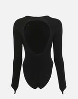 ‘Andreadamo ‘Sculpting jersey bodysuit’, black, stretch jersey, long sleeves, button fastening, crop cut, slim fit, logo on front, made in Italy