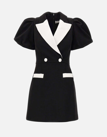 Emma mini dress Rebecca Vallance, black and white color, sustained crepe fabric, blazer design with spear lapels and double-breasted construction, short balloon sleeves, front pockets, contrasting coated buttons, zip closure on back, lined, regular fit