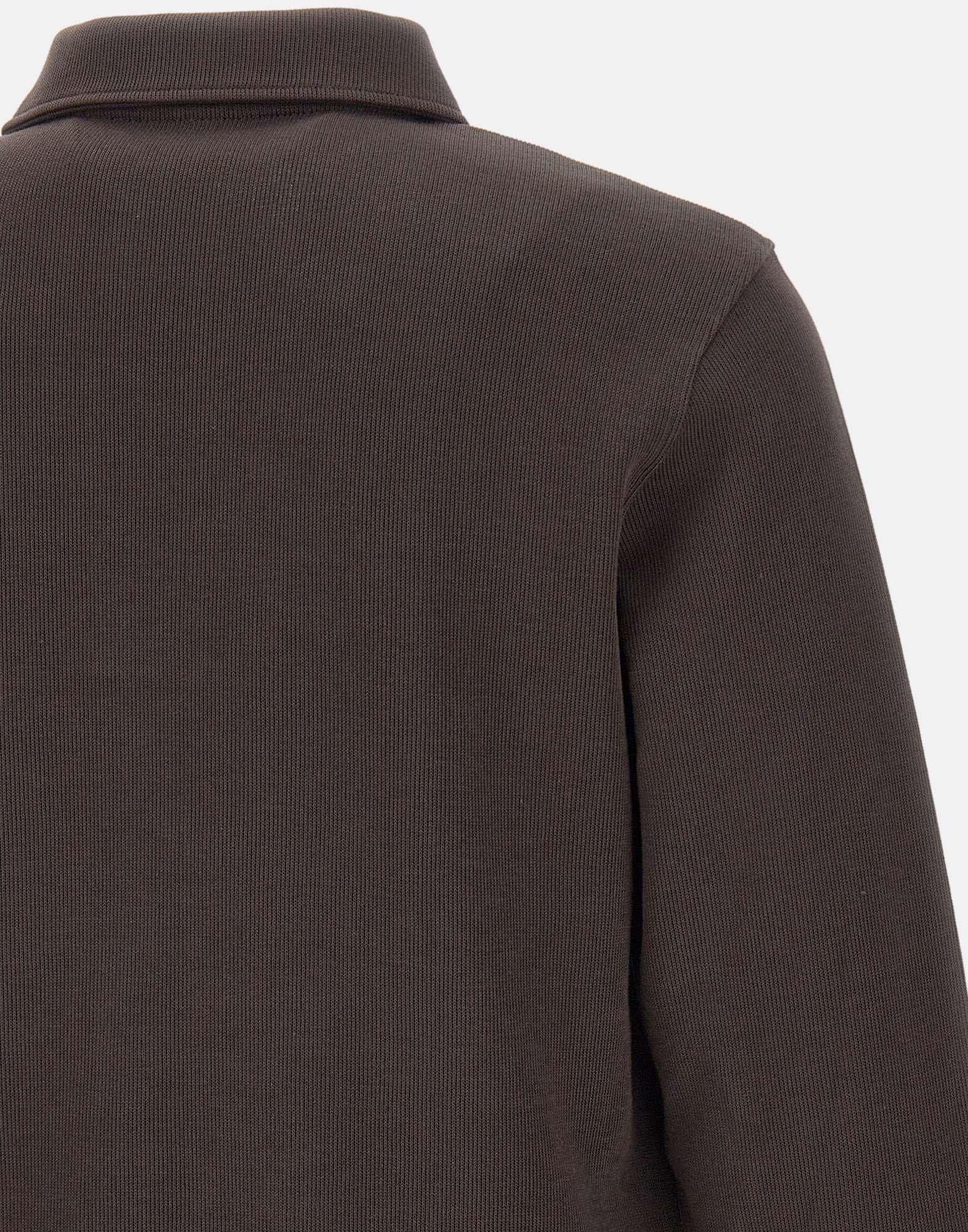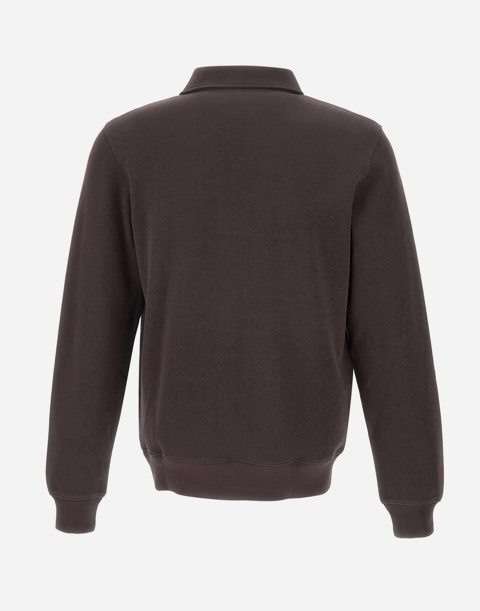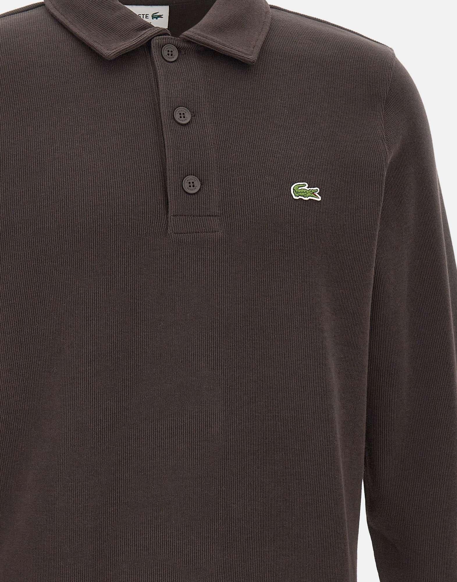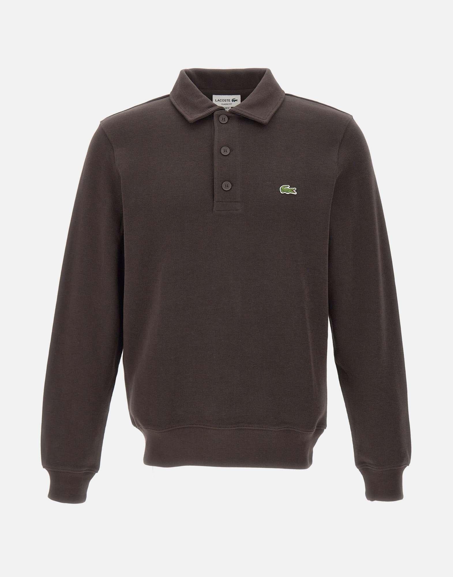 This Lacoste men's sweatshirt in dark brown combines sporty style with iconic sophistication. Crafted from high-quality interlock cotton, it features a classic collar with tone-on-tone buttons, long sleeves, and an elasticated ribbed waist and cuffs for maximum comfort. The iconic crocodile embroidered on chest adds finishing touch to this piece with unmistakable Lacoste elegance.
