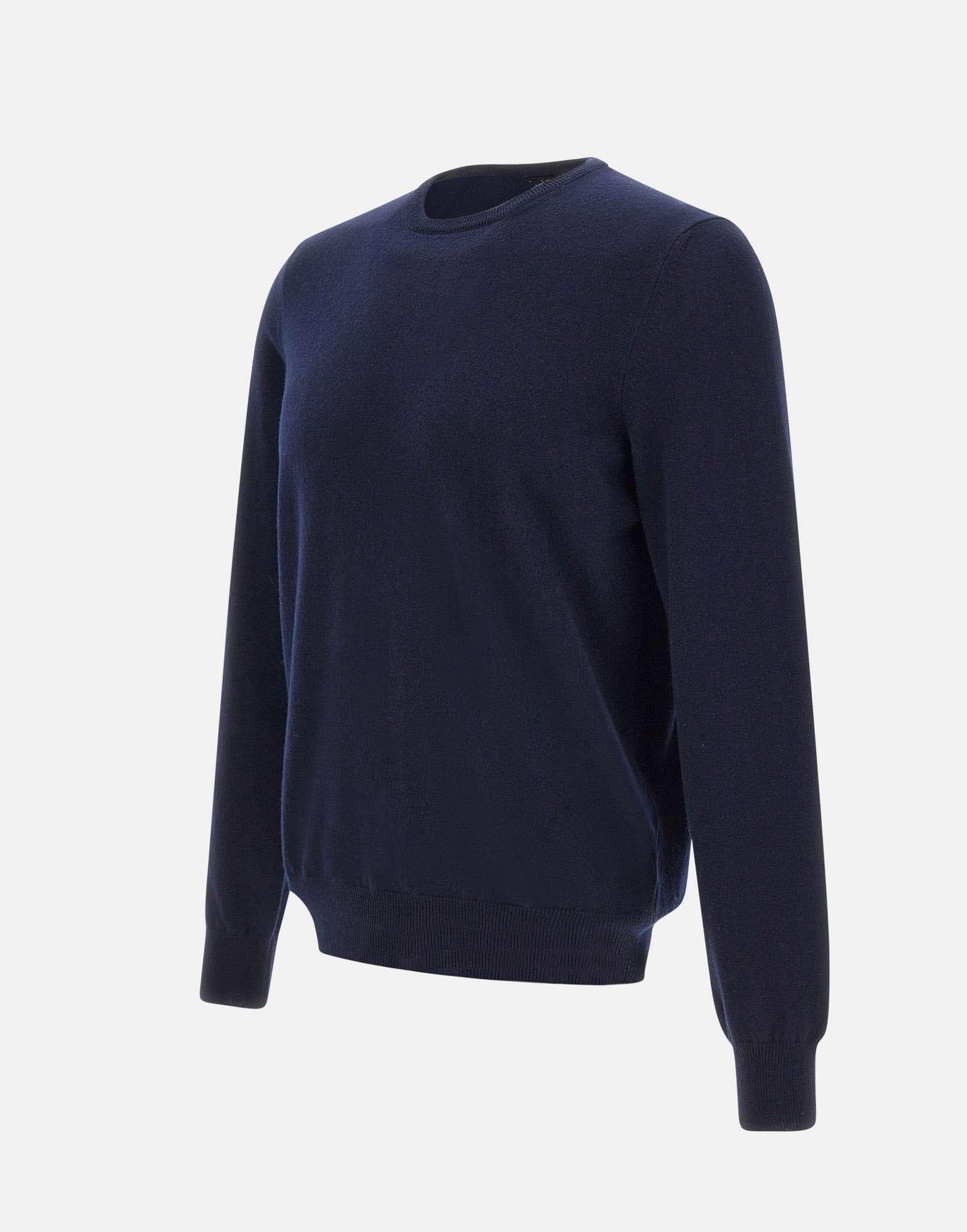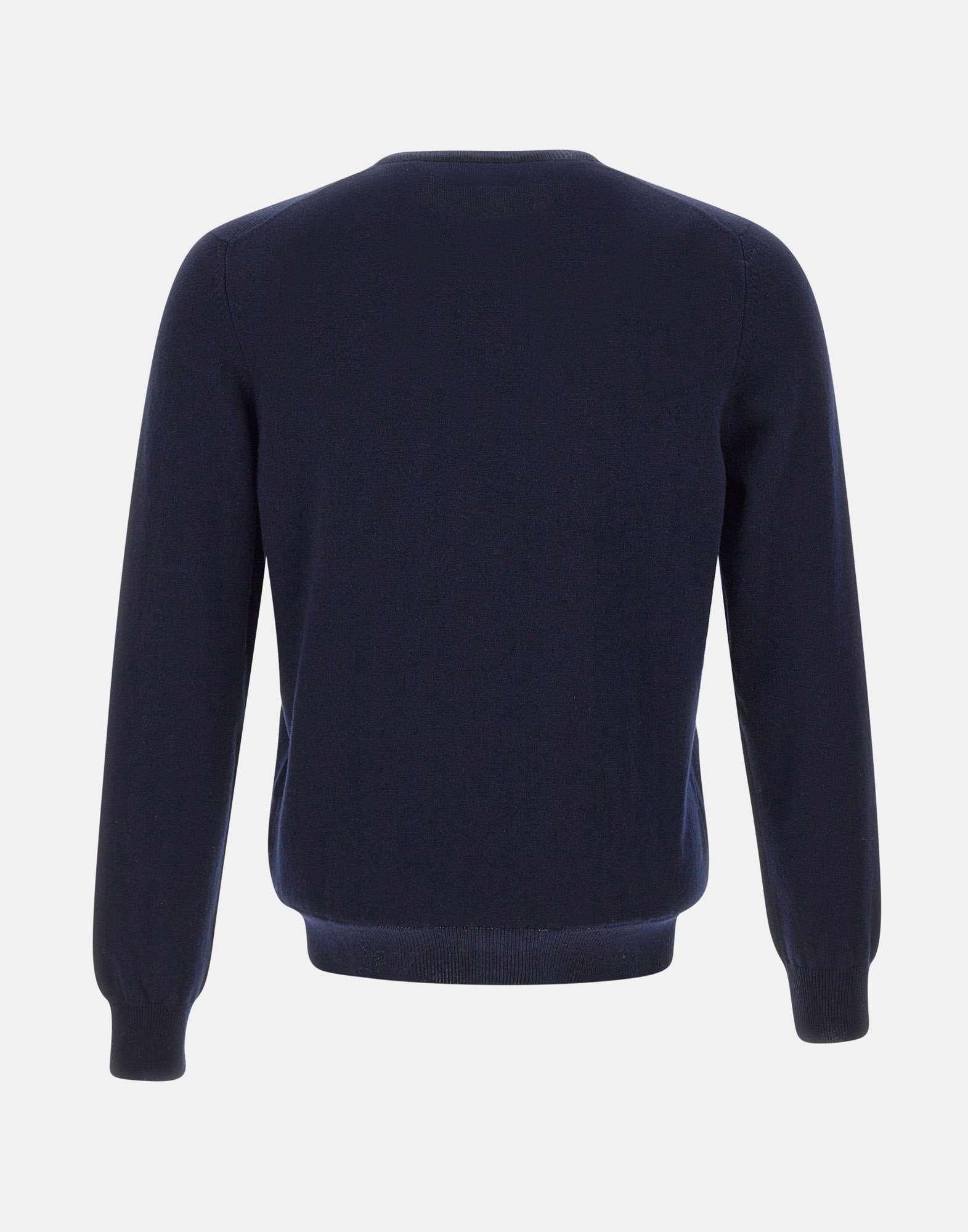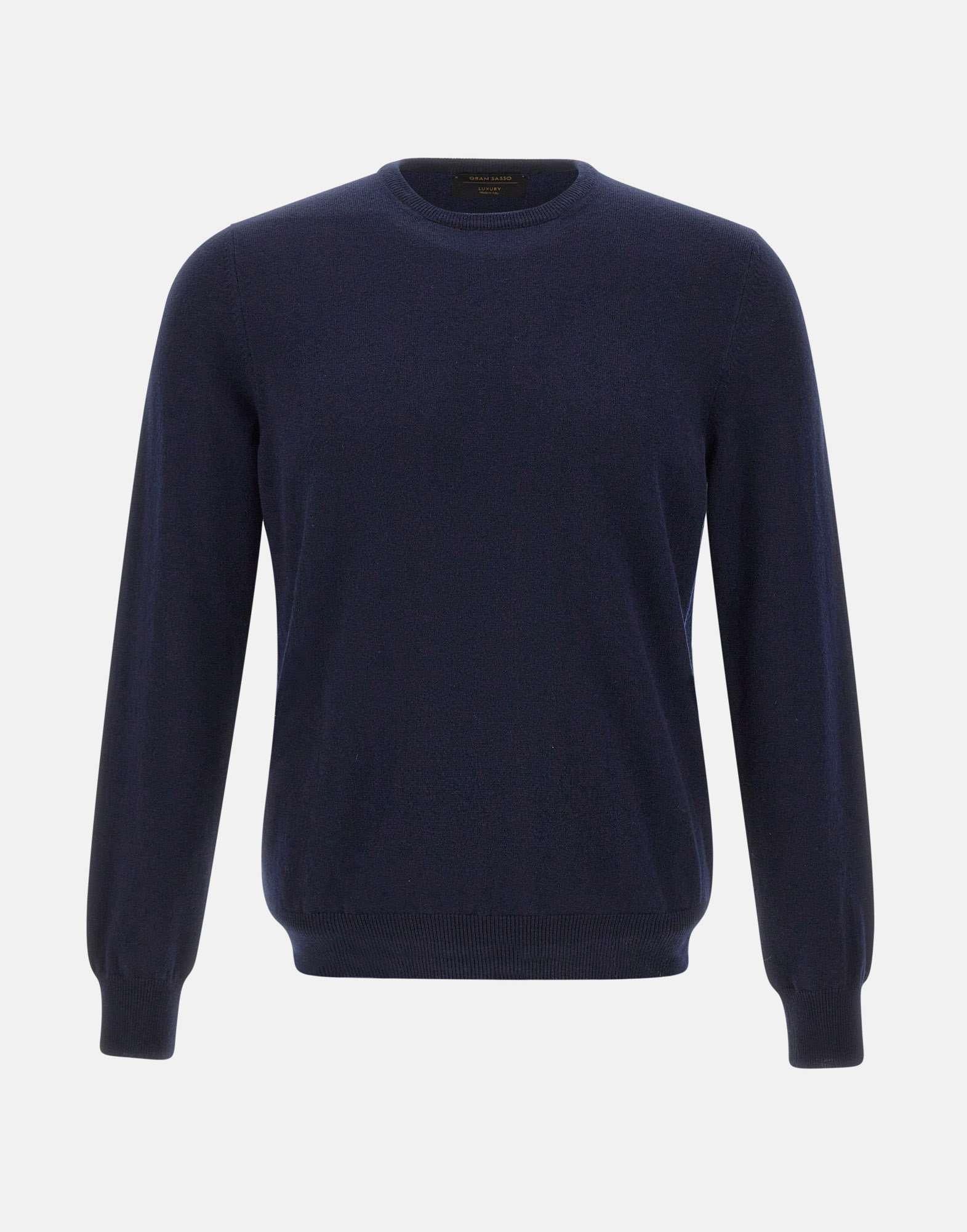The Gran Sasso men's cashmere sweater in navy blue is a refined piece from the Luxury Collection, a symbol of Made in Italy craftsmanship. Crafted from ultrafine fibers measuring less than 19.5 microns, this sweater offers exceptional softness, natural stretch, and superior comfort. The piece features long sleeves, a classic crew neck, and ribbed edges, for a clean and versatile style ideal for both casual and elegant outfits. The regular fit ensures a balanced and comfortable silhouette, perfect for wearing under jackets or coats.