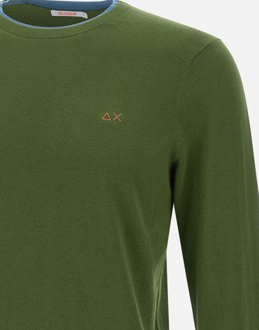 Cotton "Sweater neck double rib" men's Sun68, olive green, long sleeves, crew neck, embroidered logo on chest, ribbed edges with contrasting color, regular fit